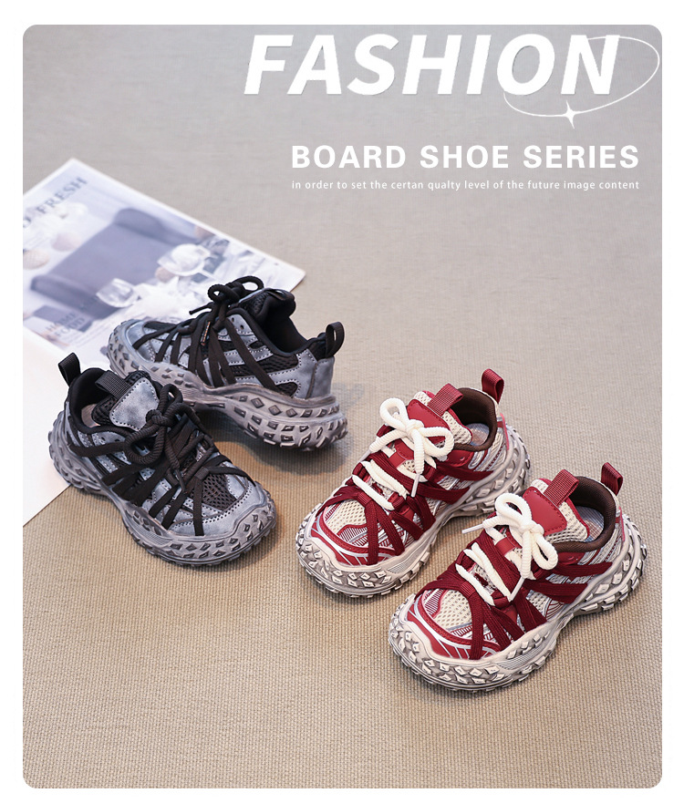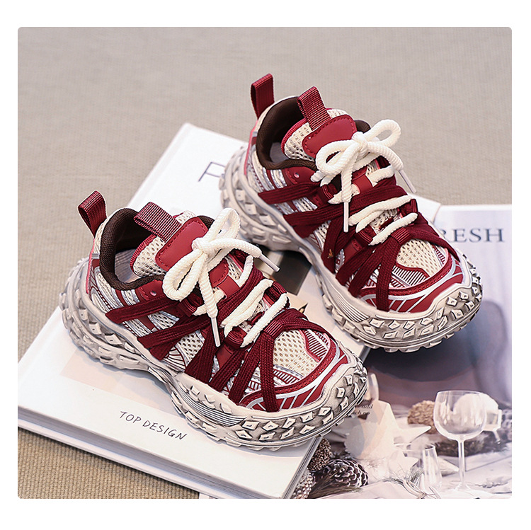 子供春と秋のネットの面の運動靴のお父さんの靴のファッションの靴の2025厚い底の柔らかい底の百合の双網の通気性のカジュアルな子供の靴