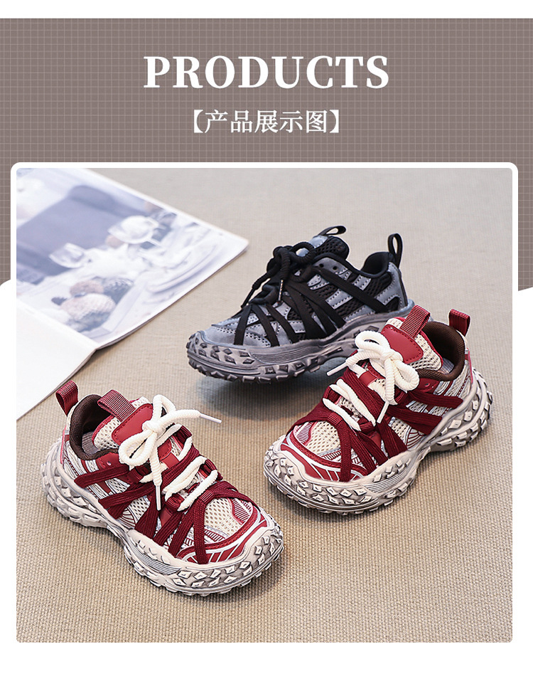 2025春の子供靴の新型の女の子の運動靴の子供のお父さんの靴の中で大きい子供の通気性の男の子の滑り止めのランニング