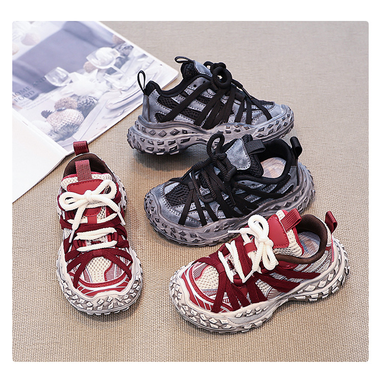 子供のお父さんの靴2025の新型の男の子の秋のタイプの双網の回転は運動靴の単網のネットの赤い潮のブランドのランニングシューズを掛けます。