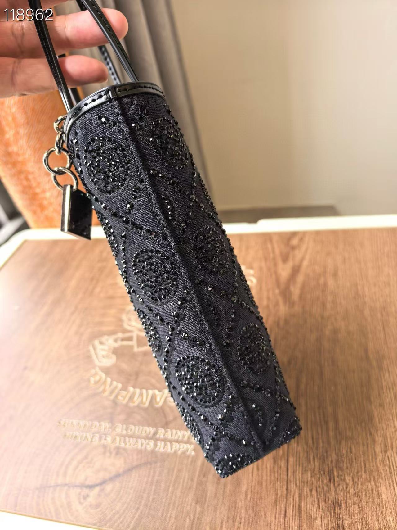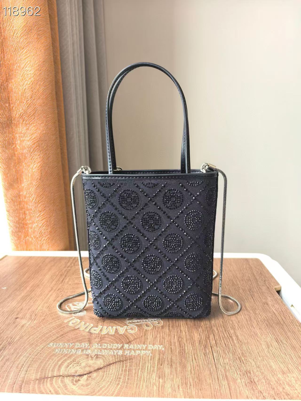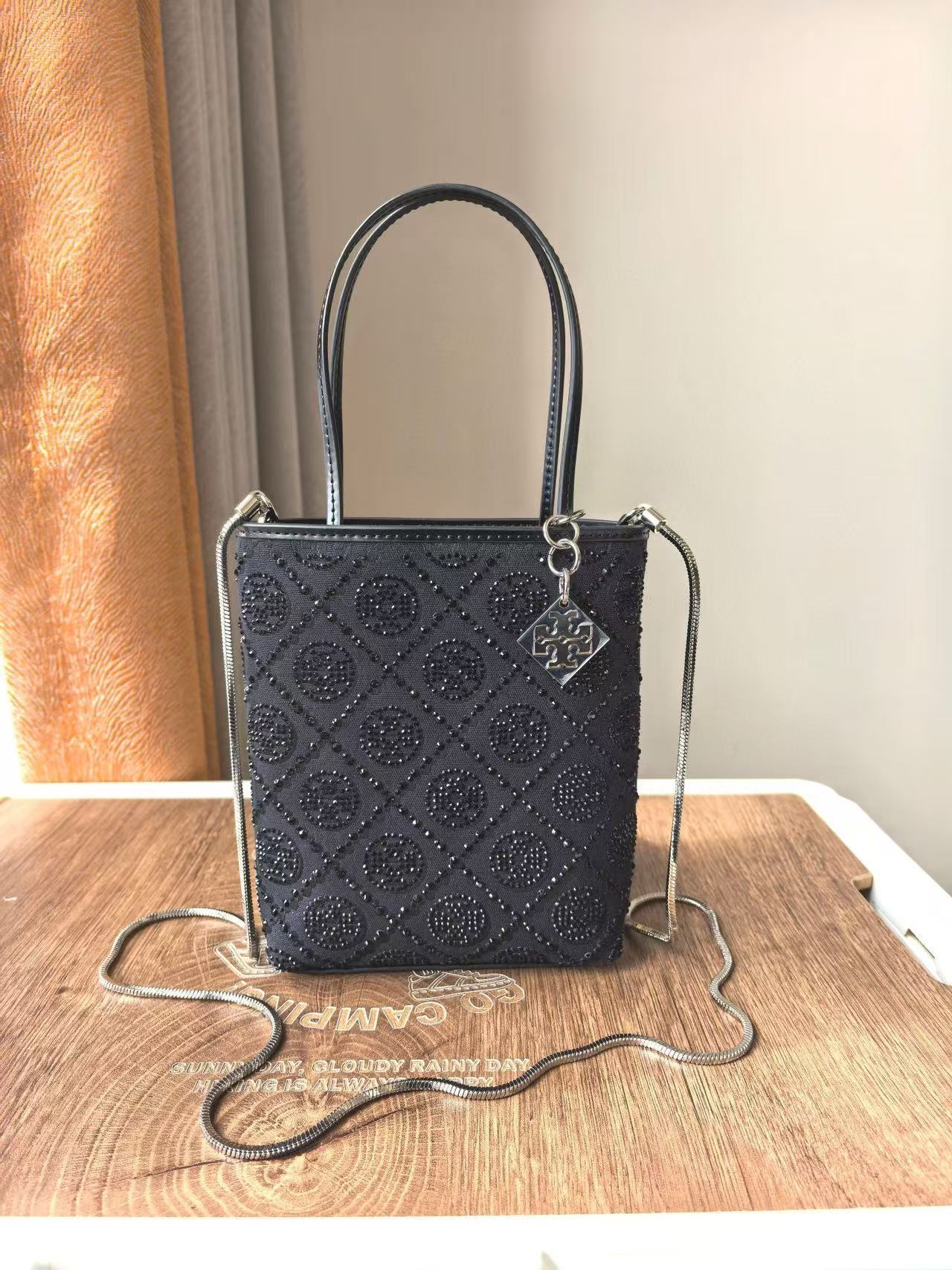 TB新款油蜡皮黑银mini手提包Kira菱格小方包百搭单肩斜挎链条小包