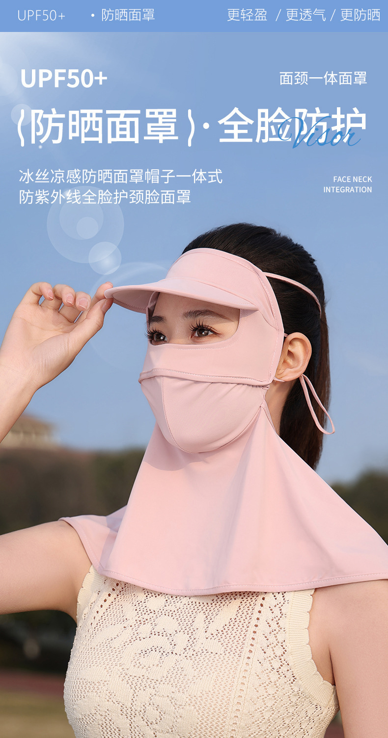 新型日焼け止めマスク全顔女性紫外線防止夏首保護日よけ軟骨氷糸騎行マスク顔ジニ