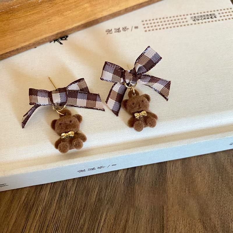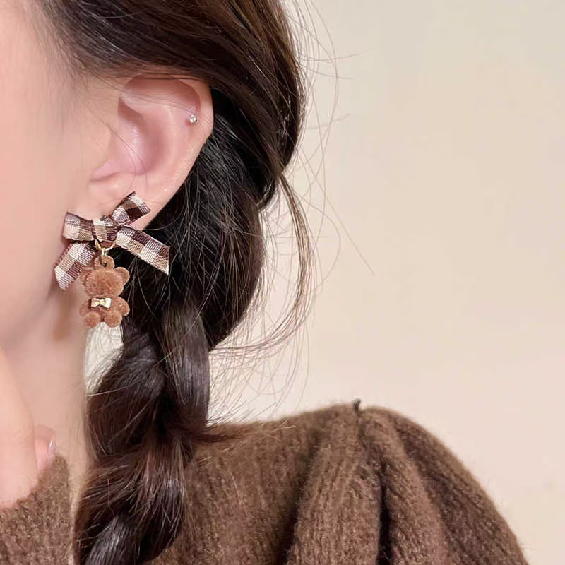 秋冬の新型の大衆の独特なかわいい植毛の蝶結びの熊のピアスの女性のアメリカの学院の風のピアスの装飾
