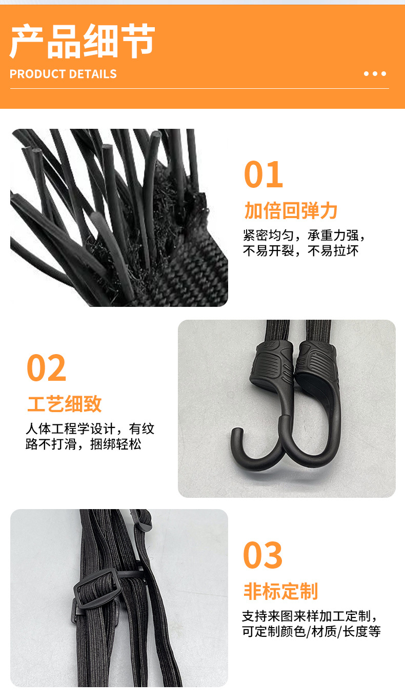 メーカー卸売り荷物ひも自転車トラック固定結束バンド弾性ロープトランク結束ロープ
