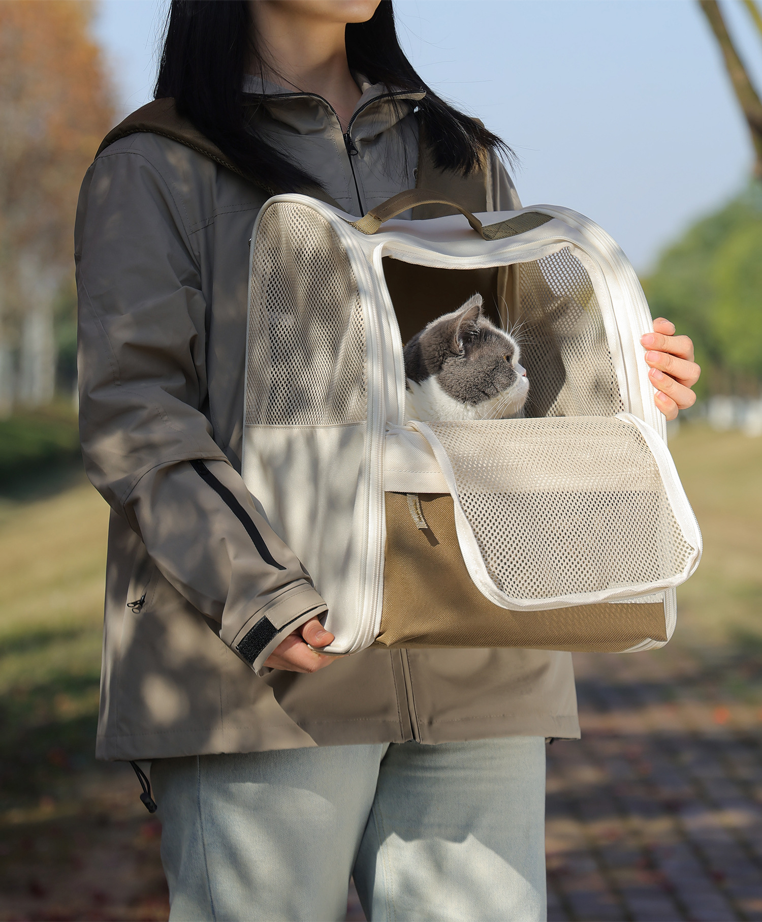 猫バッグポータブル猫バックパック拡張可能な大容量ペットバックパック折りたたみ式小型および中型犬猫外出バッグ