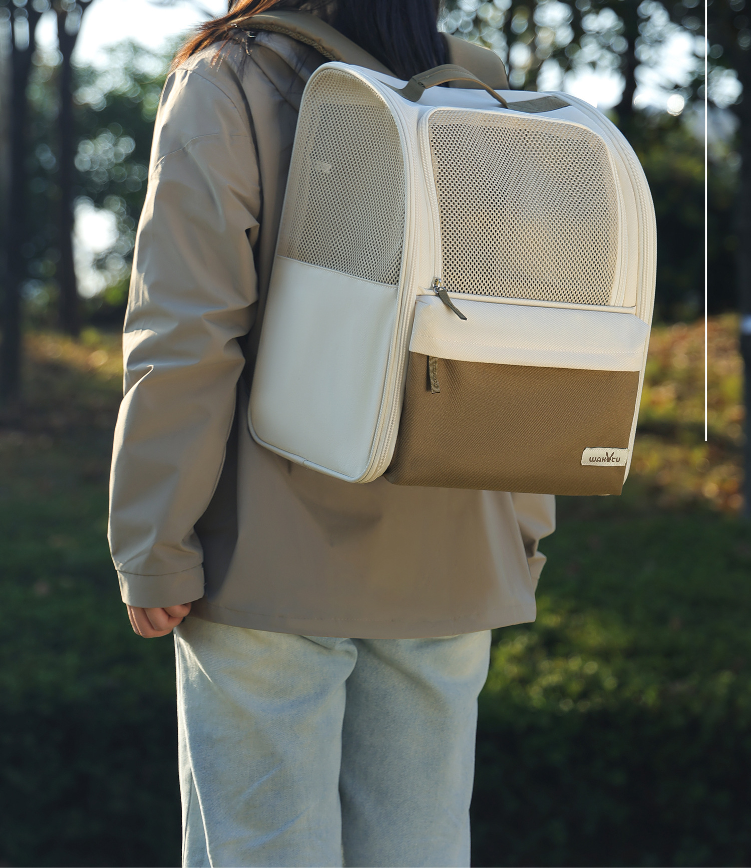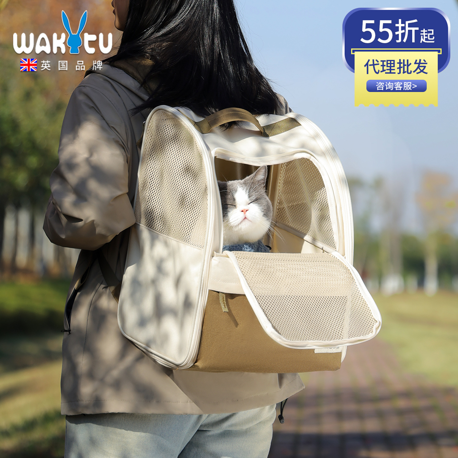 ワキトゥ ペット用外出用バックパック、ポータブル猫用バッグ、大容量の犬用バッグ、四季通用、通気性があり蒸れにくい