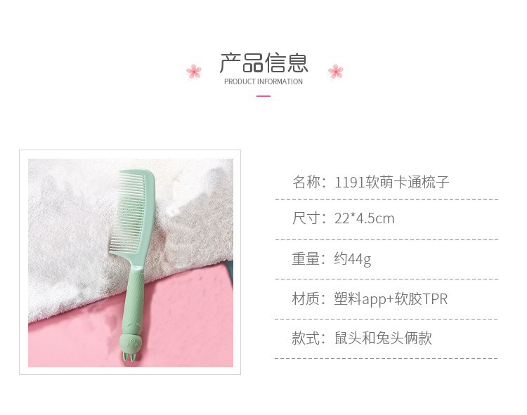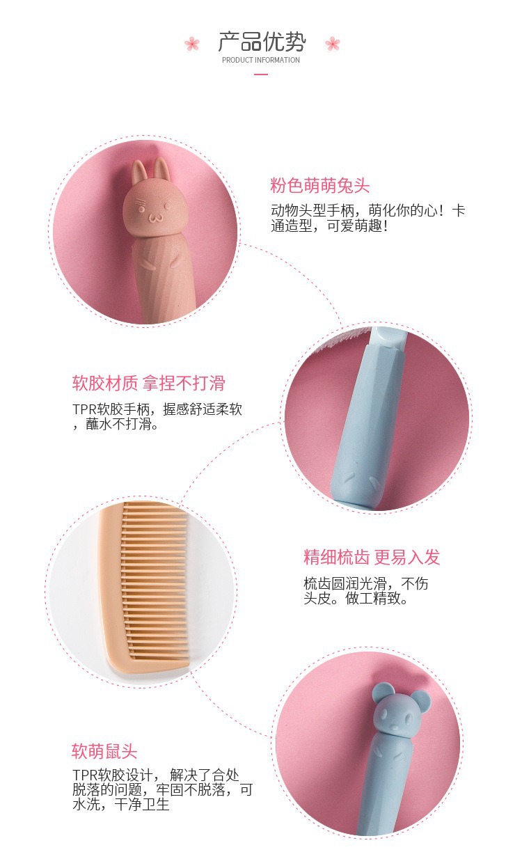 かわいい柔らかいシリコン製漫画風うさぎのヘアブラシ、女の子向け、インスタ映え、寮用、実用的なマッサージ、卸売、ヘアケア
