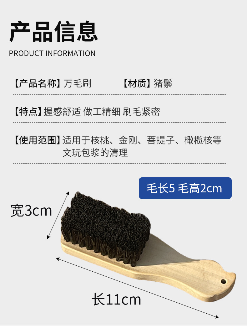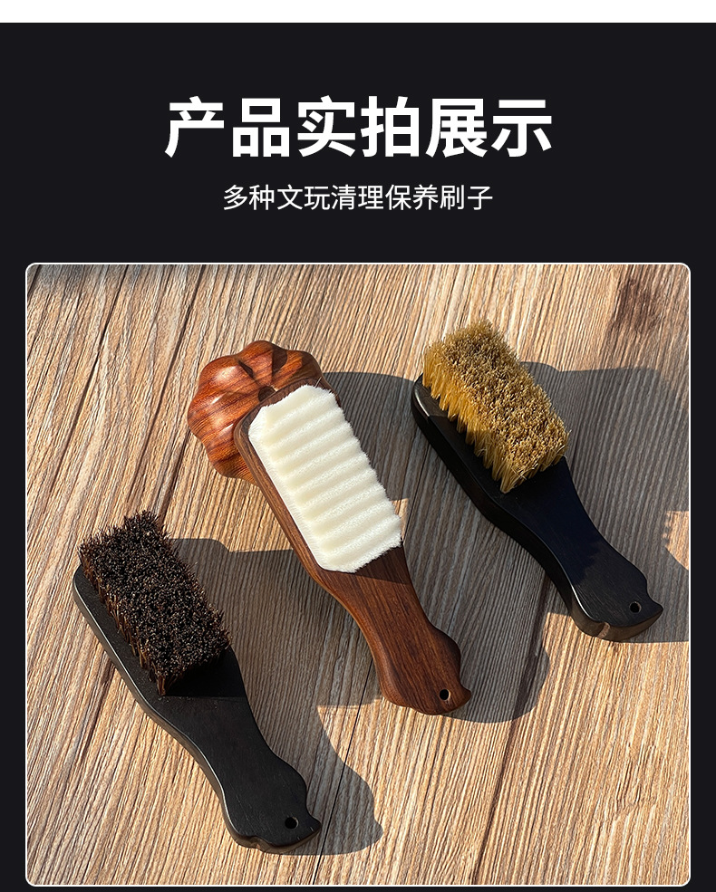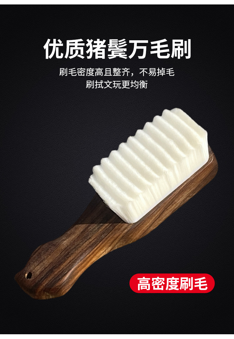 精品文玩刷子红檀猪鬃软硬毛刷橄榄核桃金刚玉器清理保养工具