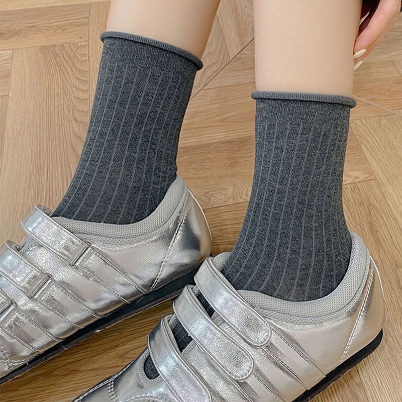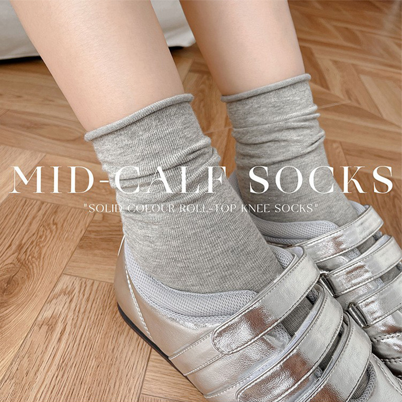 基础款纯色卷螺口中筒袜子女棉感舒适透气多色可选运动休闲袜子
