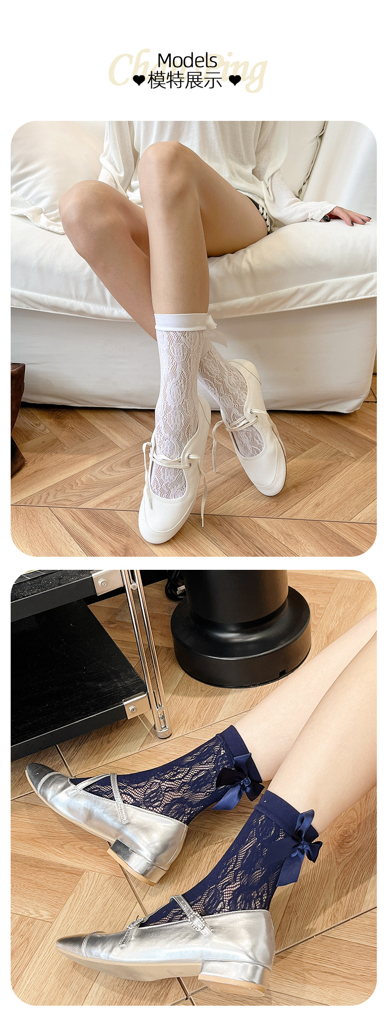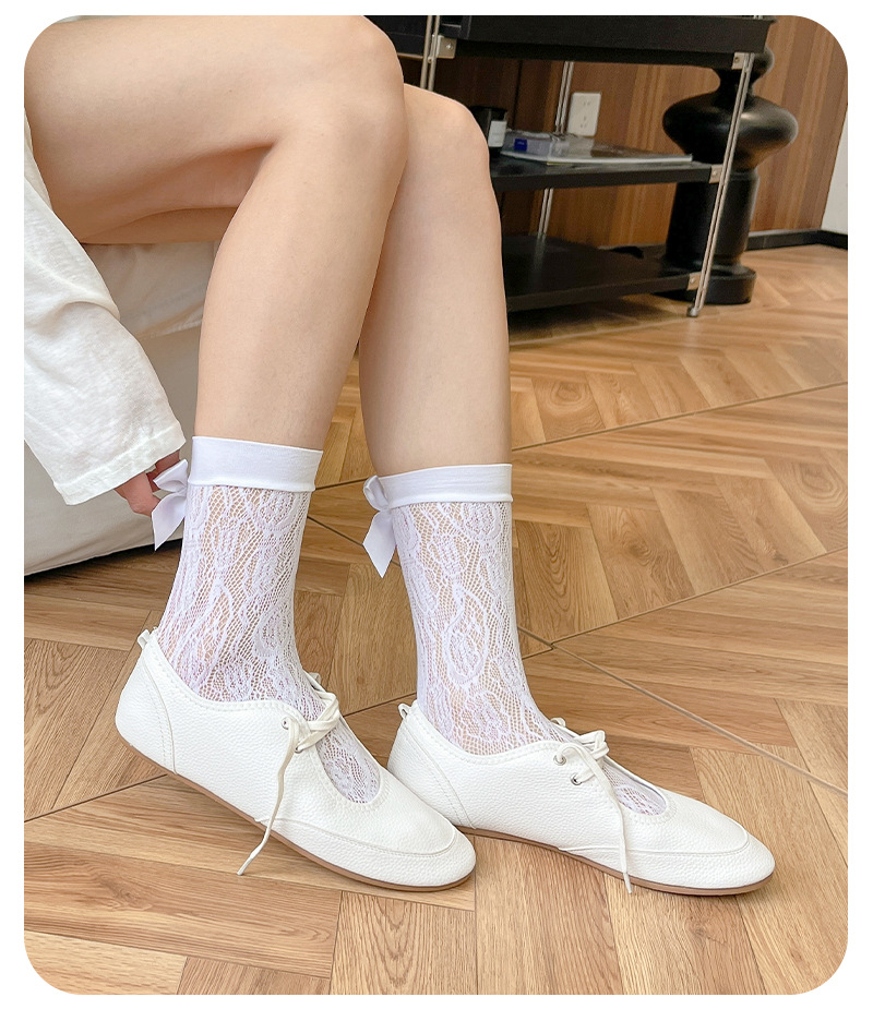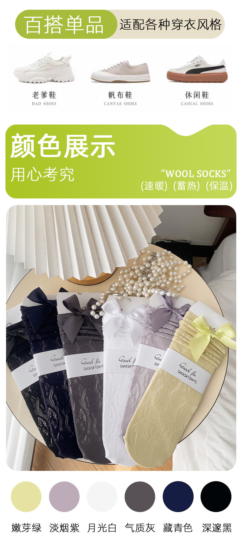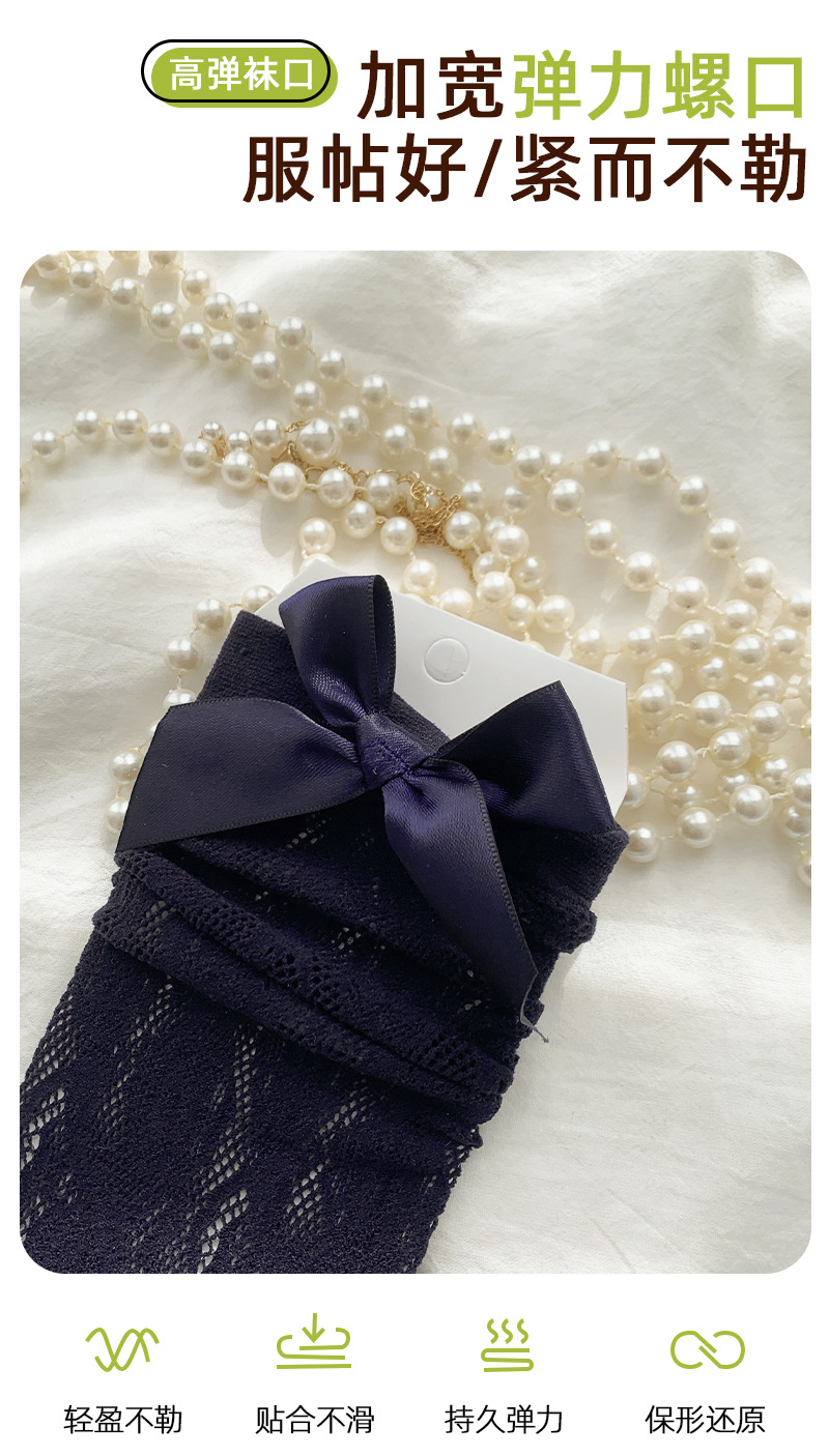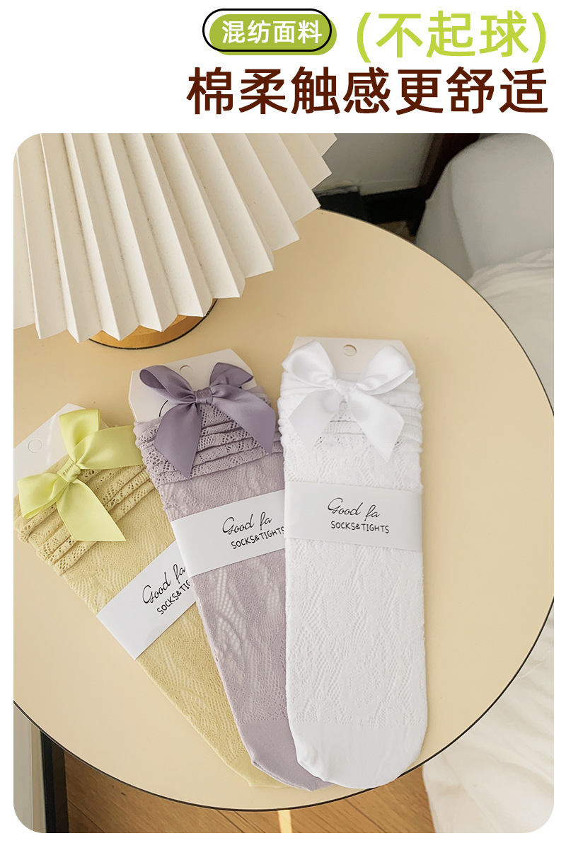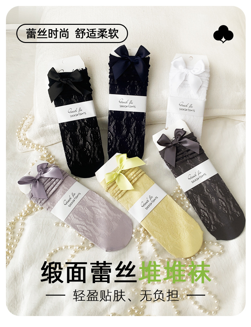 サテンのレースの蝶結びの女性は透かし彫りで靴下を積んで柔らかくて通気性があります。