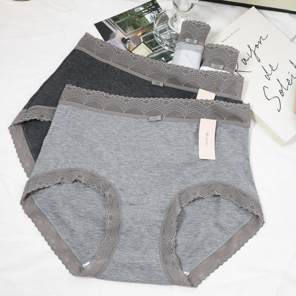 Xiaolan スカート A002 モーダル下着女性のシームレスな通気性ミッドウエスト女の子超薄型レースエッジ無地ブリーフ