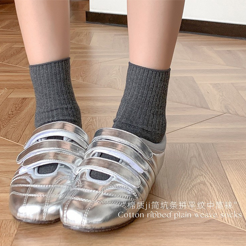 秋冬棉质简约坑条拼平纹中筒袜子女高弹罗口舒适不勒百搭休闲袜子