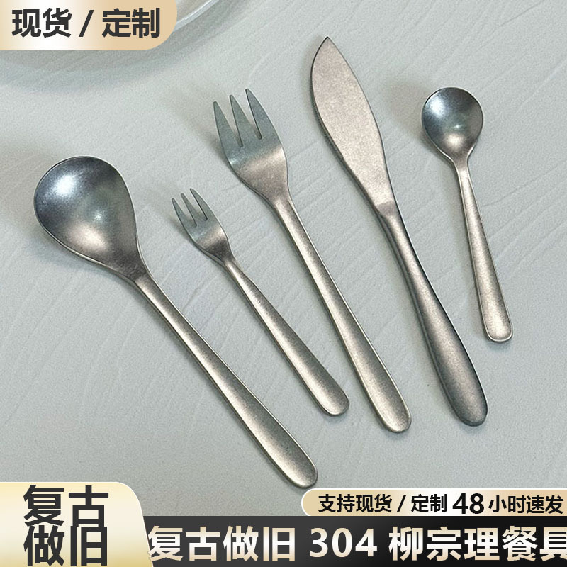 【复古做旧】柳宗理日式304不锈钢餐具叉勺酒店西餐甜品叉子勺子