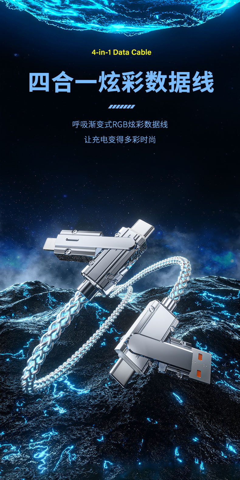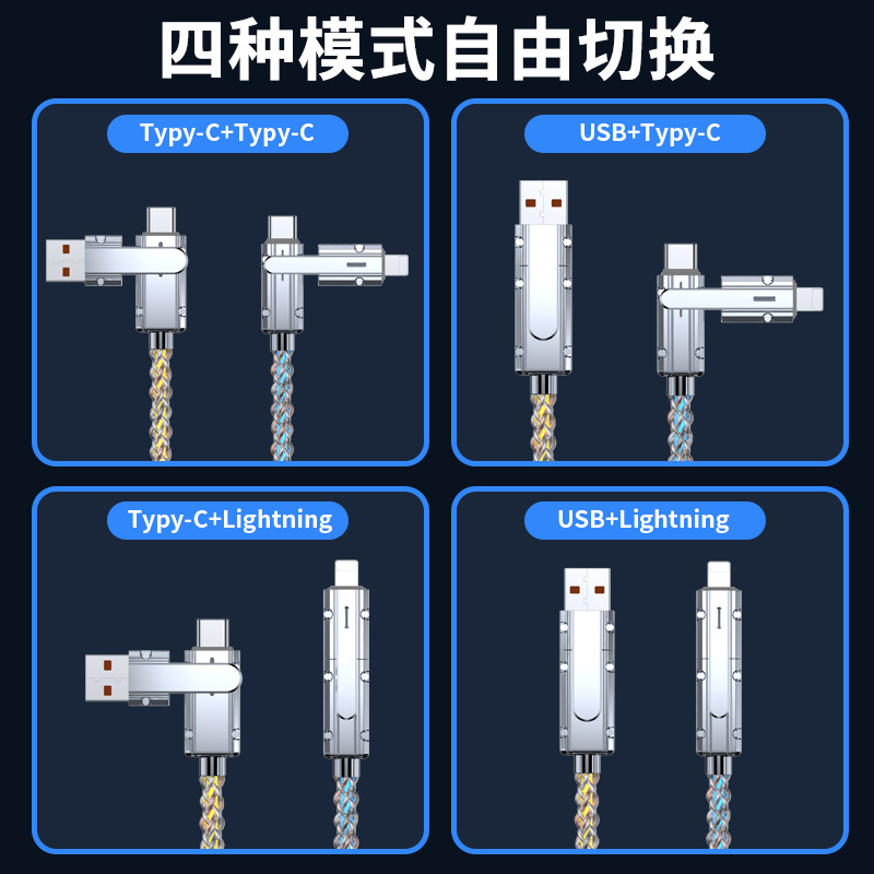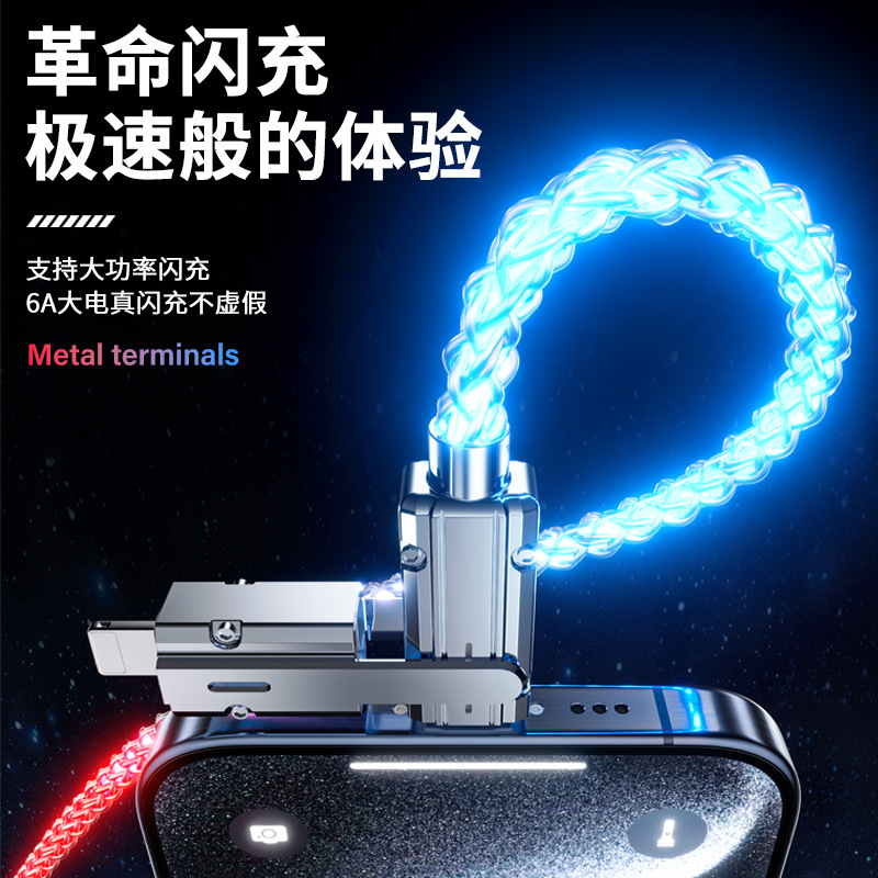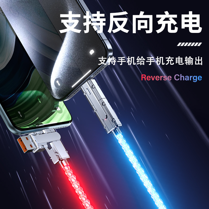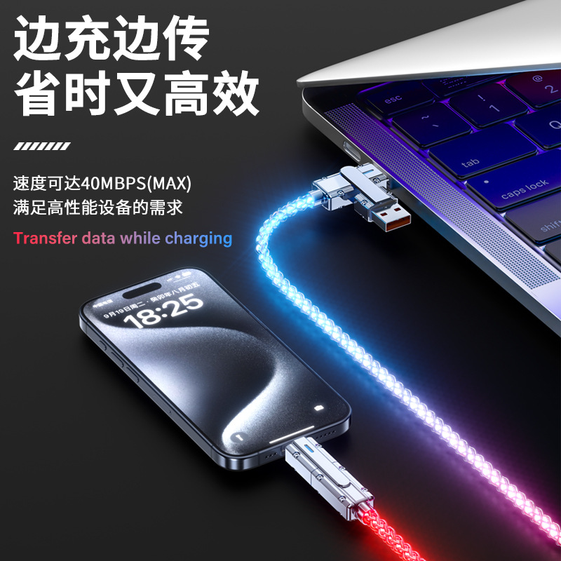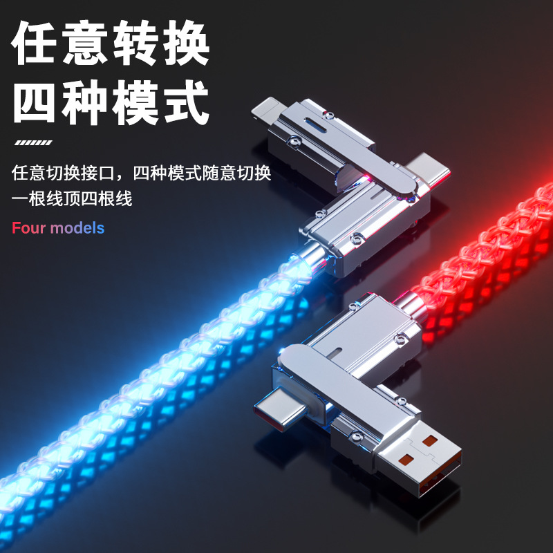 クロスボーダー2in1カラフル急速充電データケーブルRGB発光グラデーション亜鉛合金4in1多機能充電ケーブル