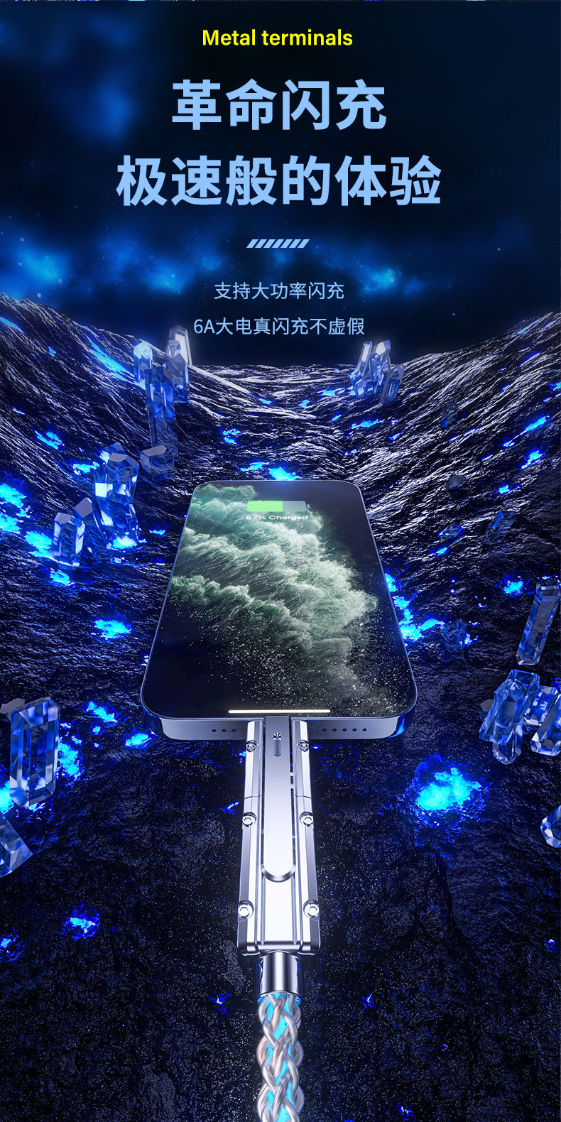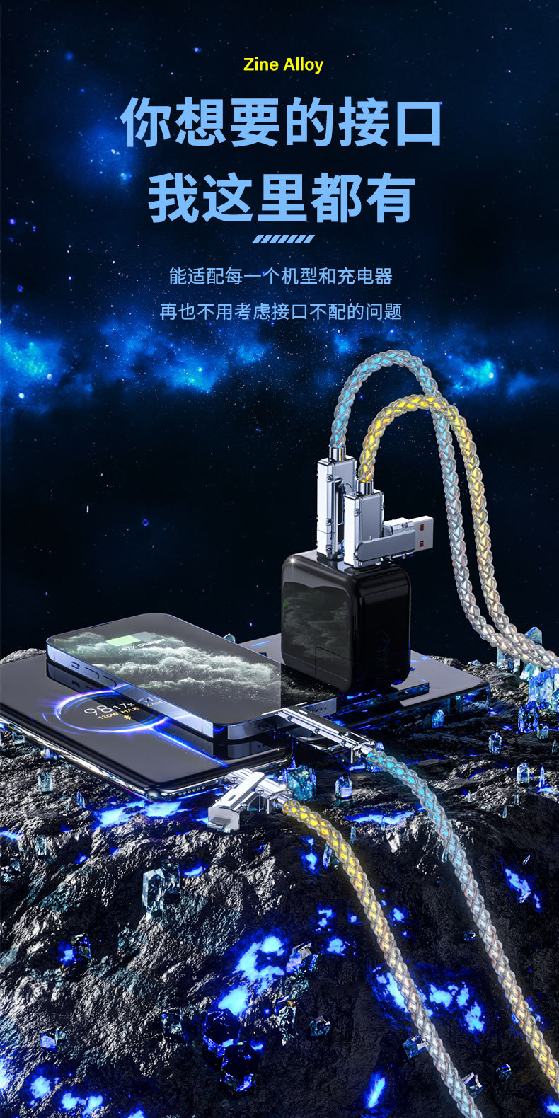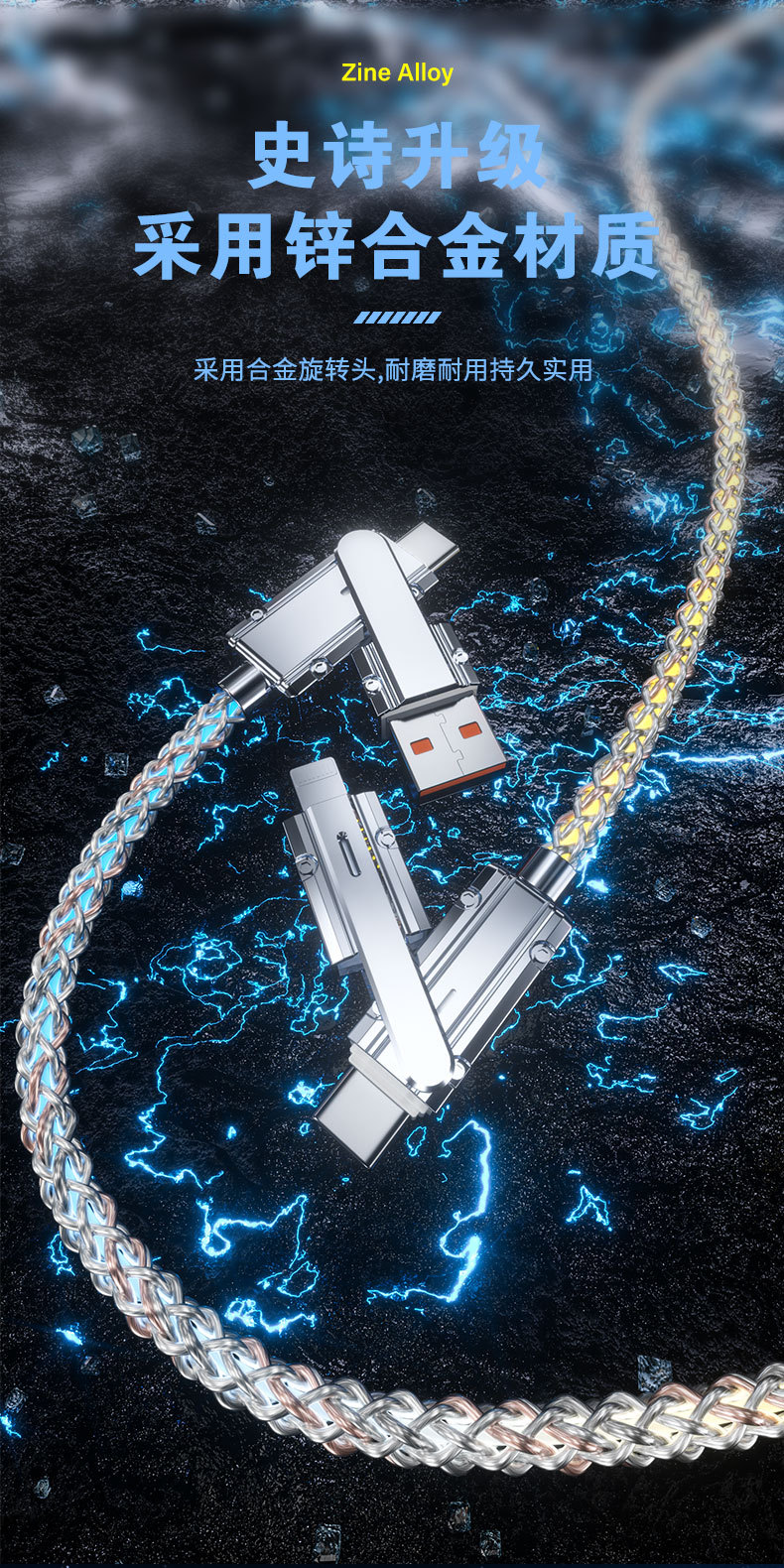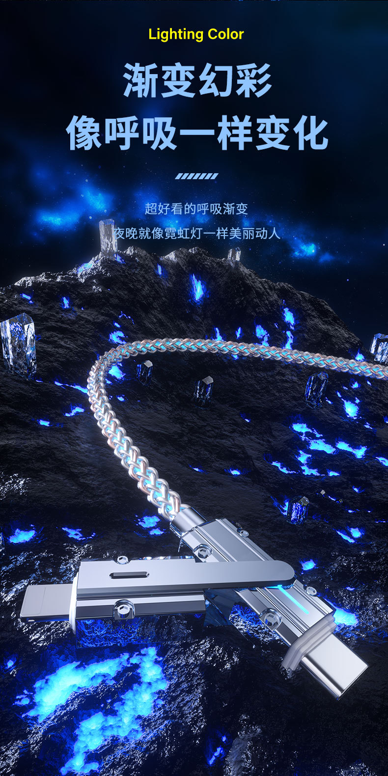 クロスボーダー2in1カラフル急速充電データケーブルRGB発光グラデーション亜鉛合金4in1多機能充電ケーブル