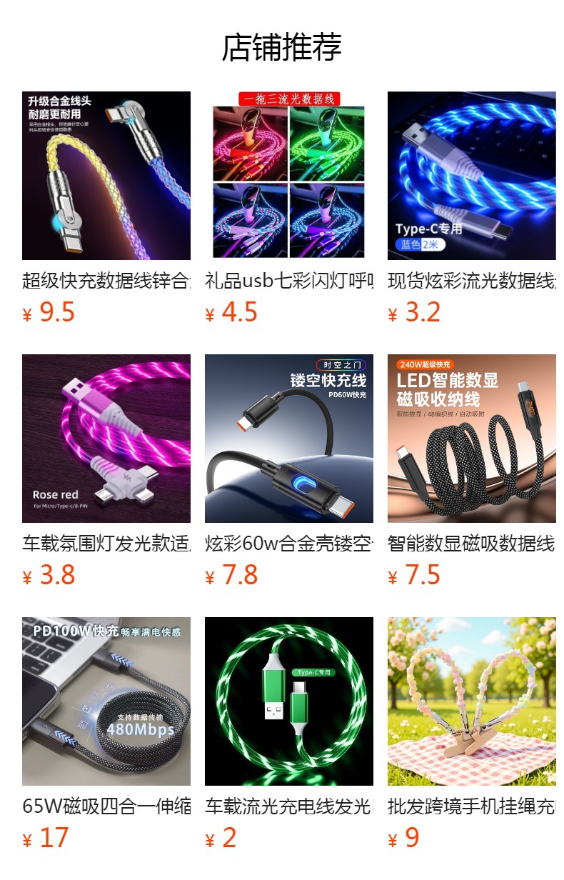 100W流光渐变数据线车载通用type-c充电线适用于苹果华为安卓手机