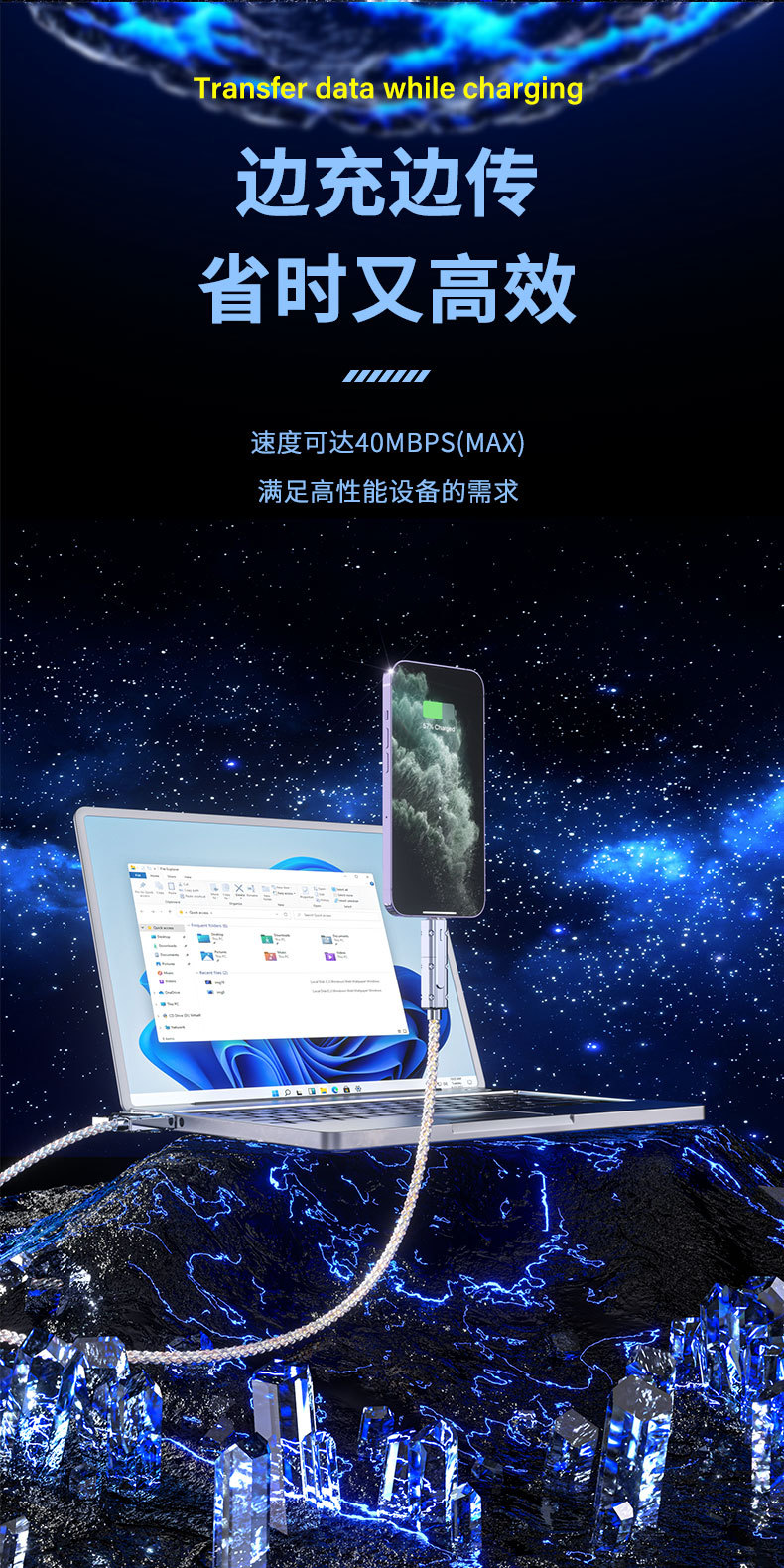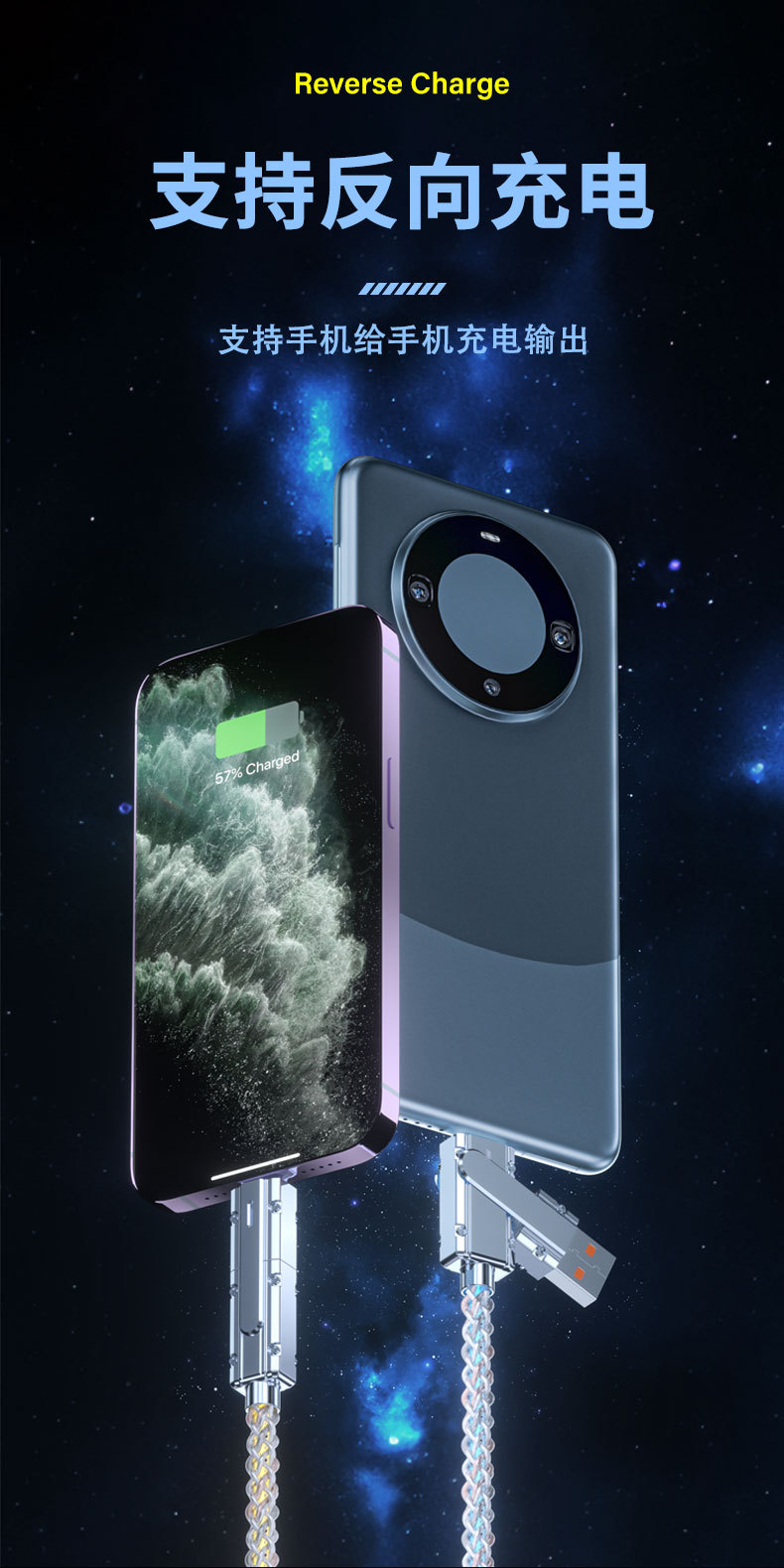 2対2充電ケーブル超高速充電PD Huawei Appleに適した540度回転星空ストリーマPDデータケーブル