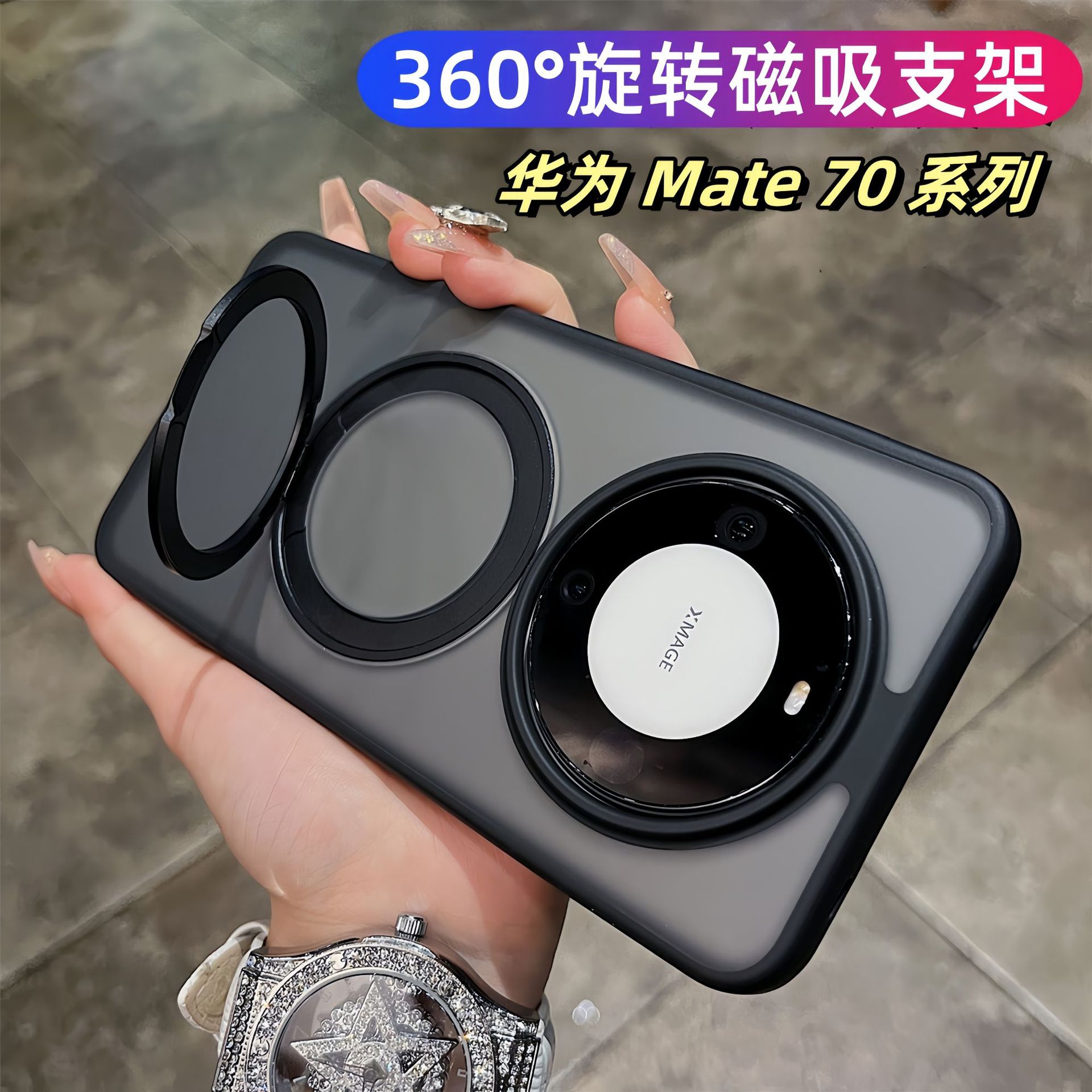 適用華為mate70pro携帯ケース磁気吸引回転スタンドMATE70肌感フロスト防止支点ケース
