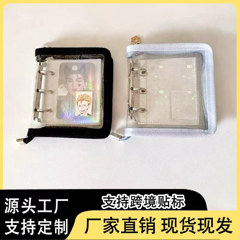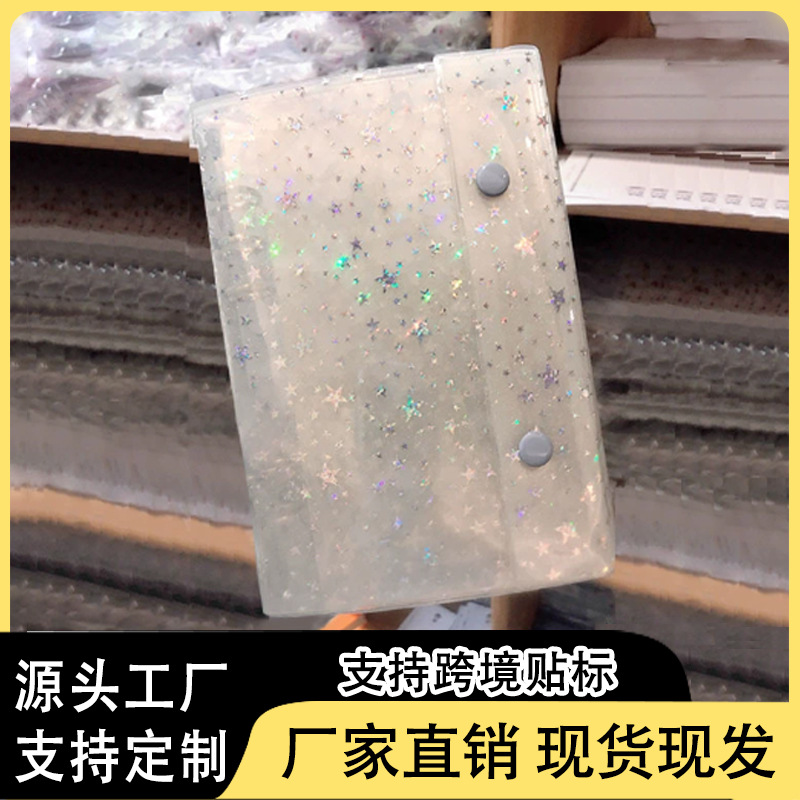 A5A6 グリッタージッパー付き透明ルーズリーフノートブック、スターアイドル追跡用、取り外し可能なノート、透明でシンプルな収納バッグ