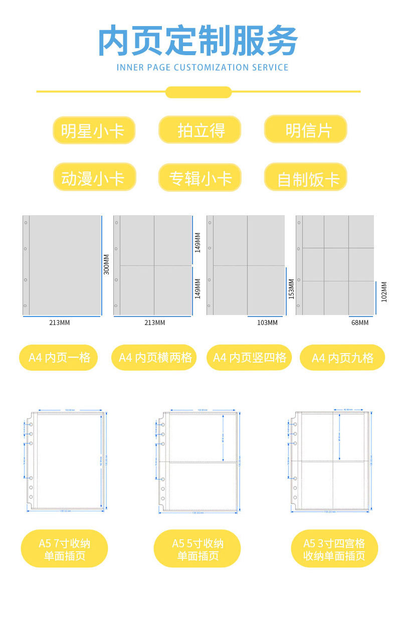 現品3寸4格インサート式カード冊純色カード冊はがきA5ラケット追星小カード収納冊