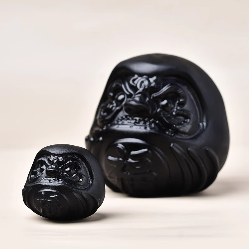 天然黒曜石達摩置物原石彫刻フロスト金ホームリビングルーム寝室装飾置物