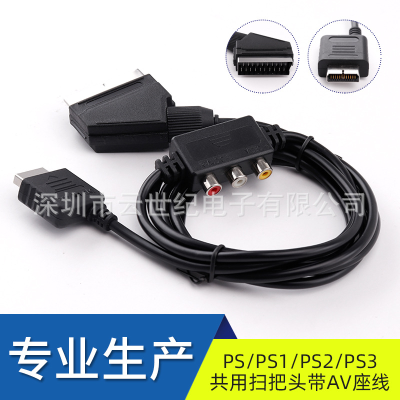 工場直販 高品質 PS/PS1/PS2/PS3共用 ブラシ型コネクタ AVケーブル付き ブラック 1.8m