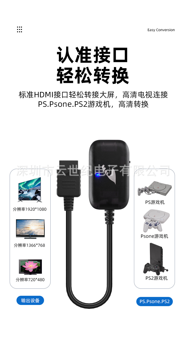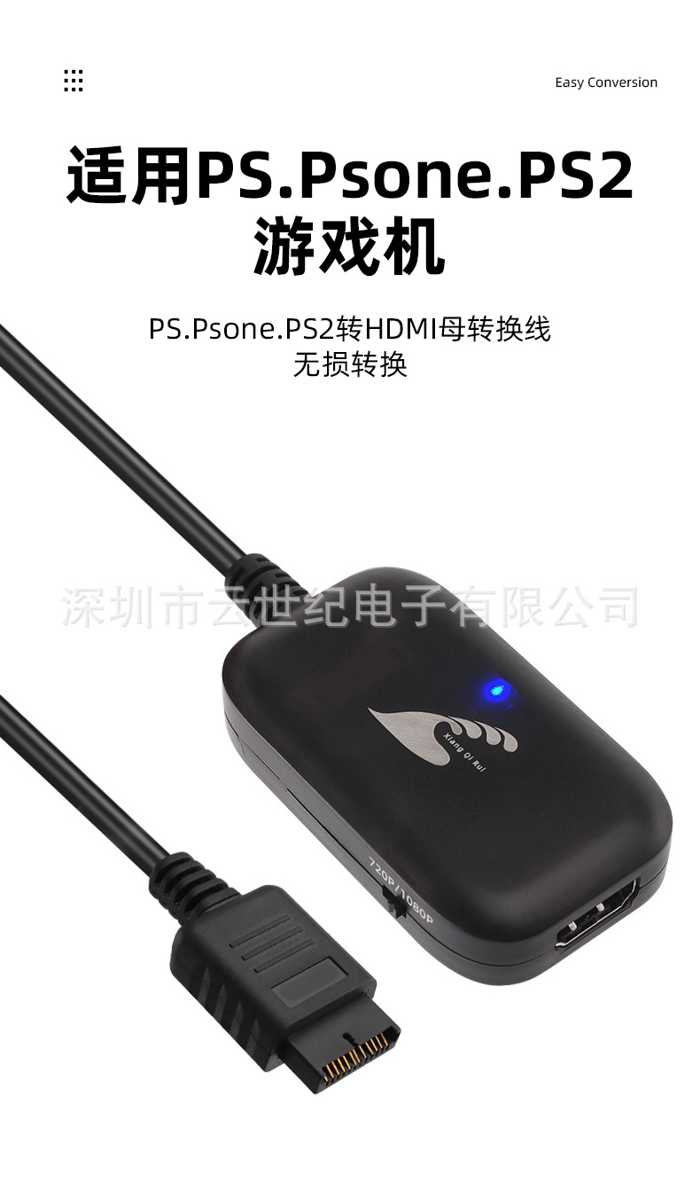工場直販高品質 PS.Psone.PS2 to HDMI メス変換ケーブル (1080P)