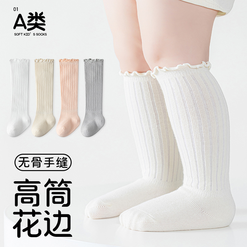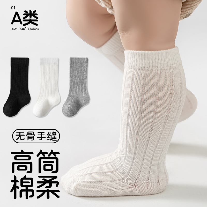 初新生婴幼儿0-1-3岁宝宝棉A类春秋冬季无骨松口长筒高筒小腿袜子