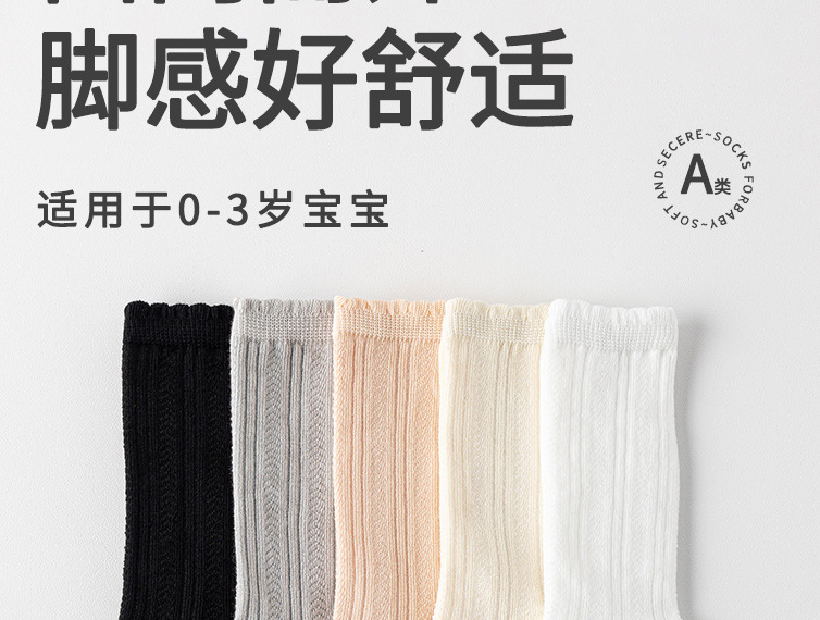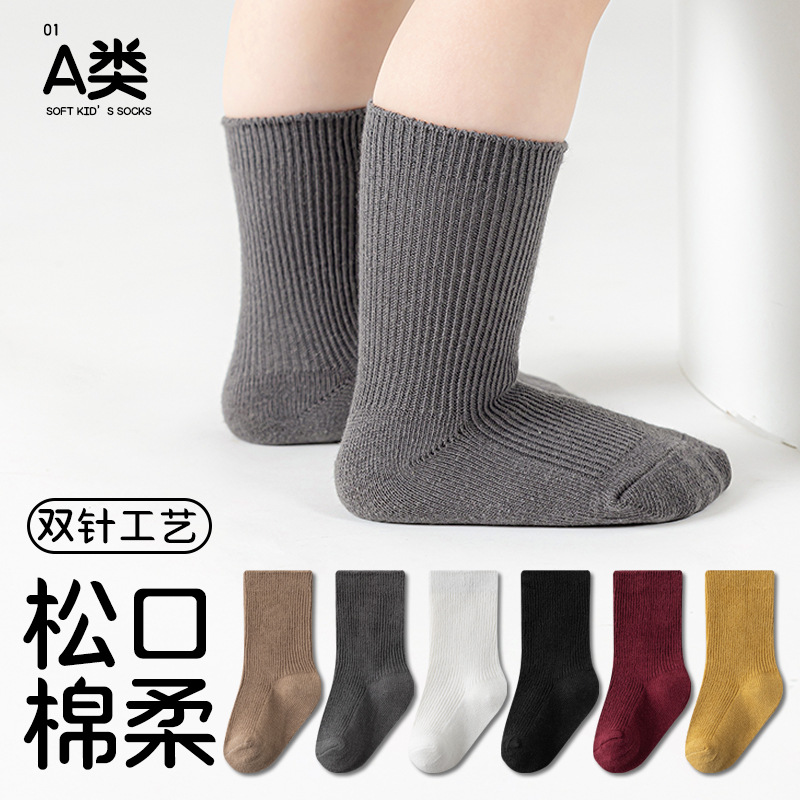 新款新生婴幼儿宝宝0-1-3岁棉A类松口不勒腿双针春秋季中筒袜子长