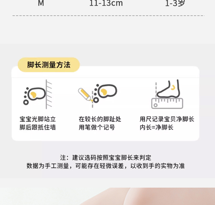 子供用靴下のサイズ Sサイズ、約0-1歳、推奨足長9-11CM,Mサイズ、約1-3歳、推奨足長11-13CM,Lサイズ 3-5歳 推奨足長13-15CM