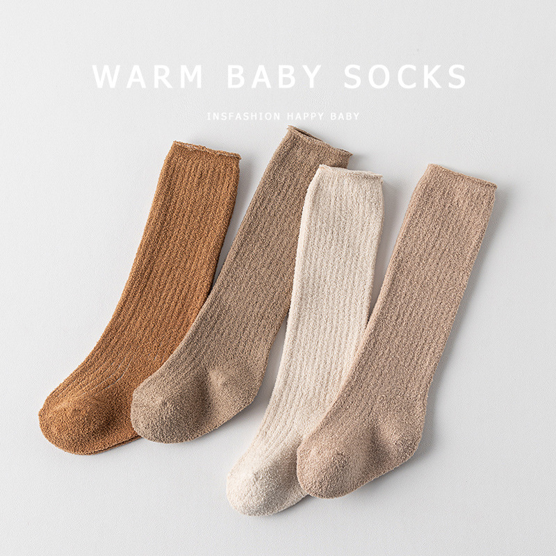 新生児幼児用冬用コーラルベルベット裏起毛厚手毛圈保温ふくらはぎ丈ソックス(ゆるめ)