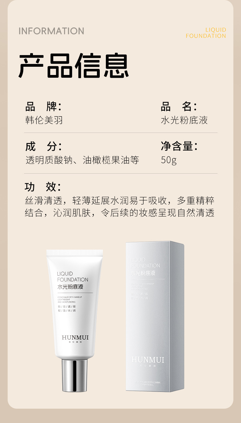 韩伦美羽水光粉底液不卡粉养肤保湿隔离素颜霜修饰肤色自然清透