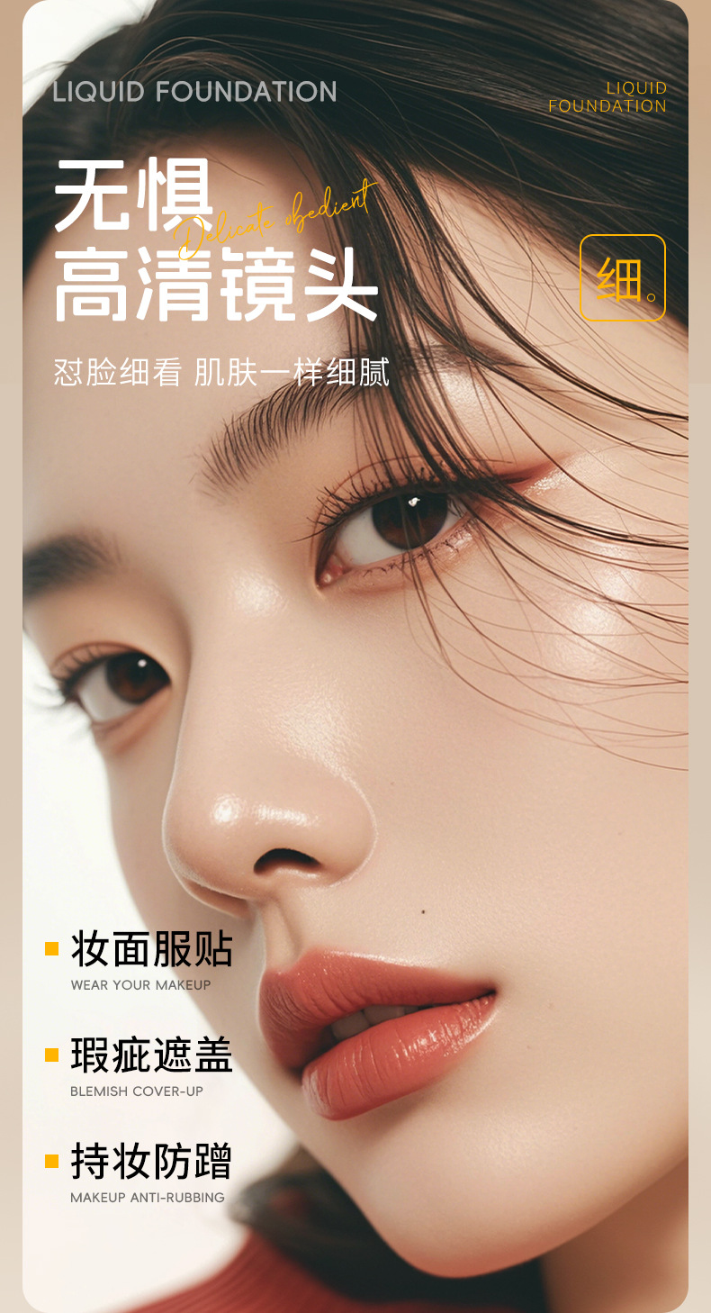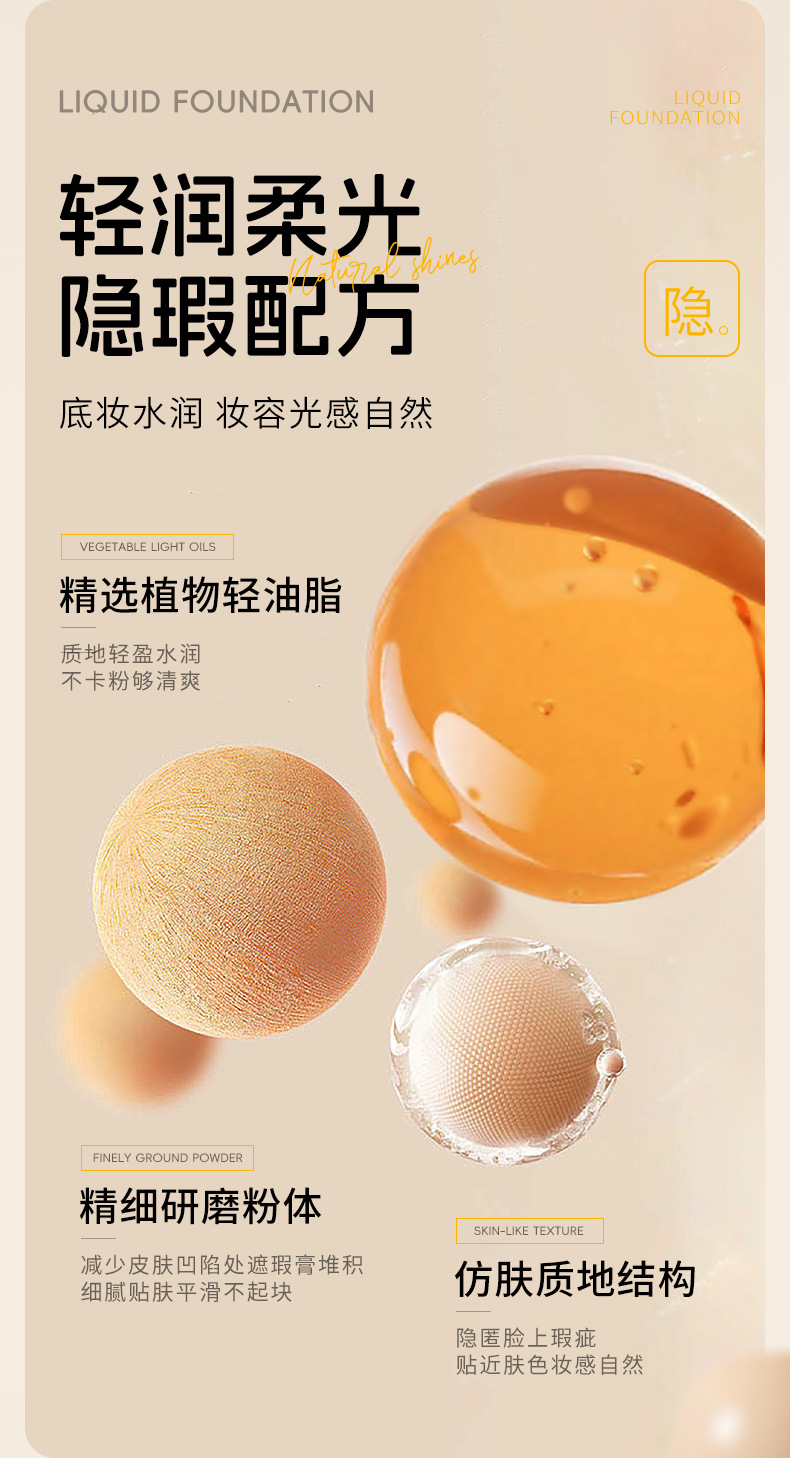 抖音韦雪爆款水光粉底液遮瑕均匀肤色提亮淡化痘印不卡粉厂家直销