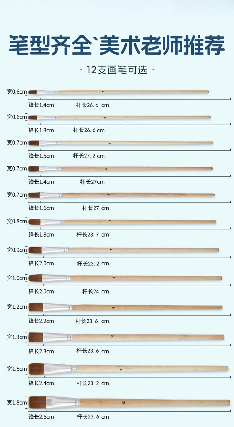 ロングロッド12本セット水チョーク原木ロッド狼ミリ平頭油絵ペンアクリル単支水粉源工場