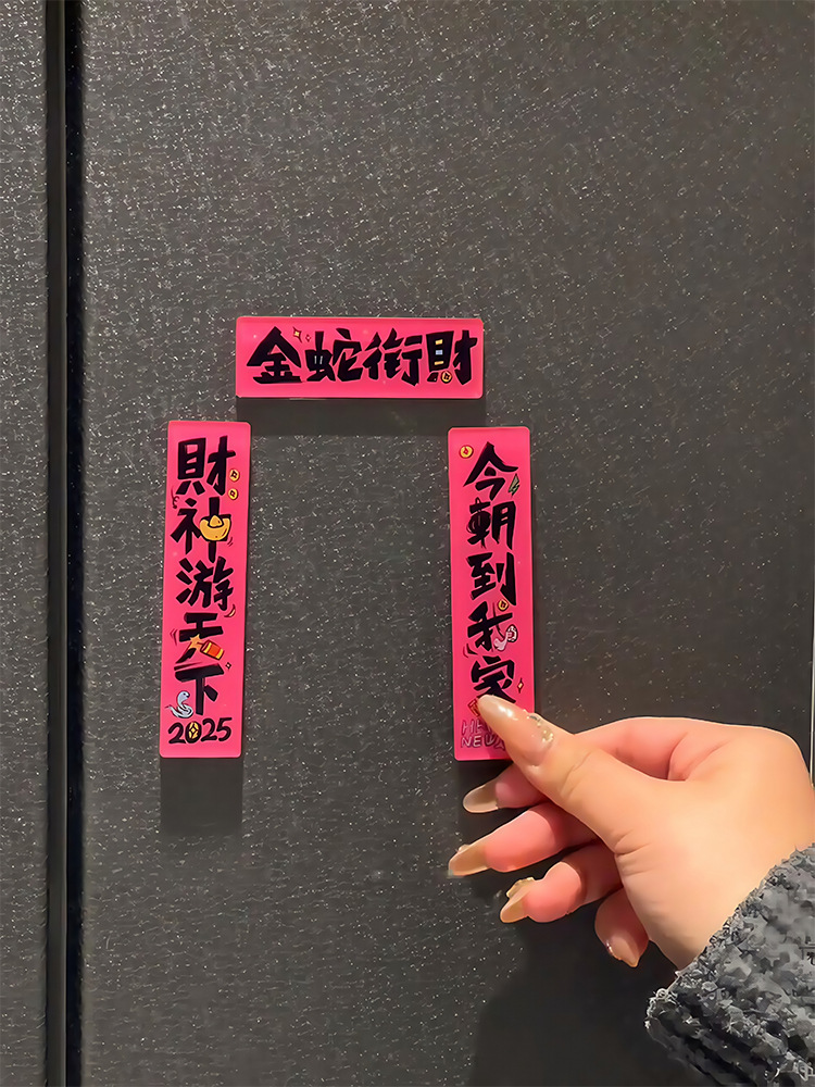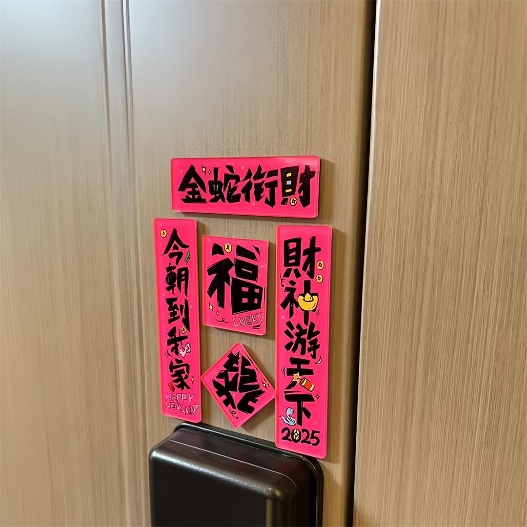 2025蛇年新年対聯アクリル磁気吸引冷蔵庫貼付創意新年旧正月磁気吸引門聯装飾