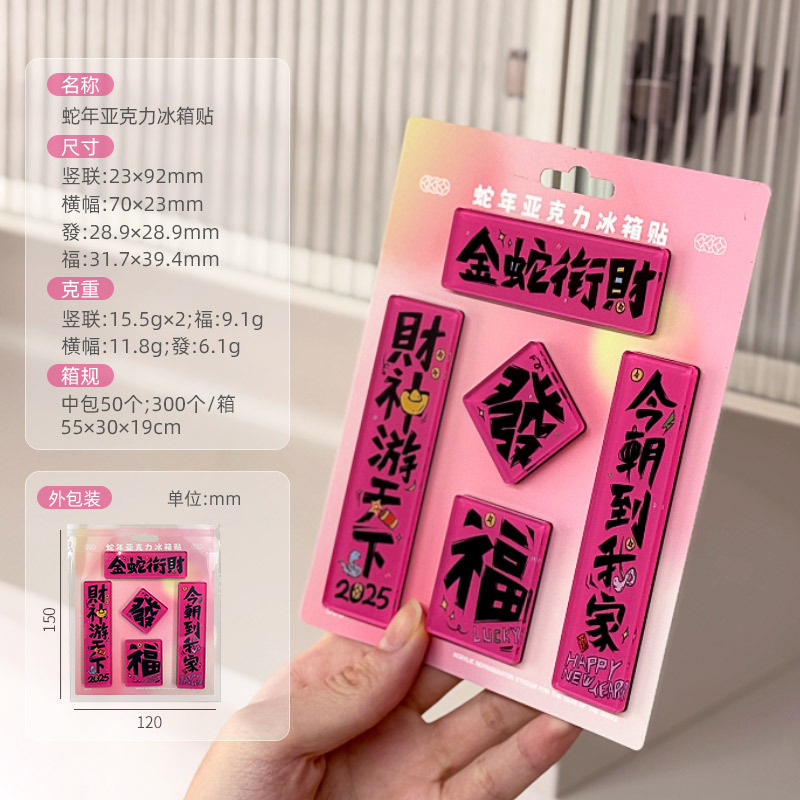 自家製冷蔵庫貼り蛇年DIY材料透明アクリル新年対聯創意国潮長方形アクリル板