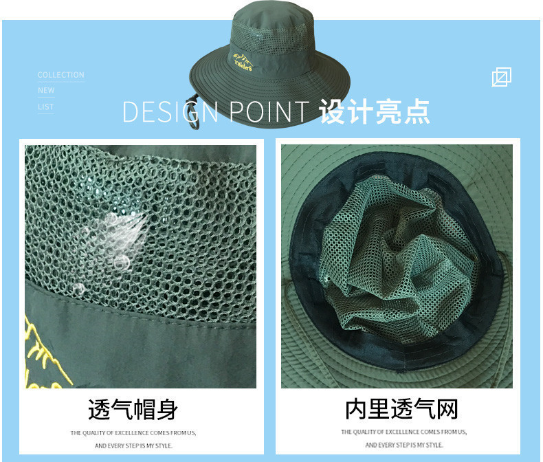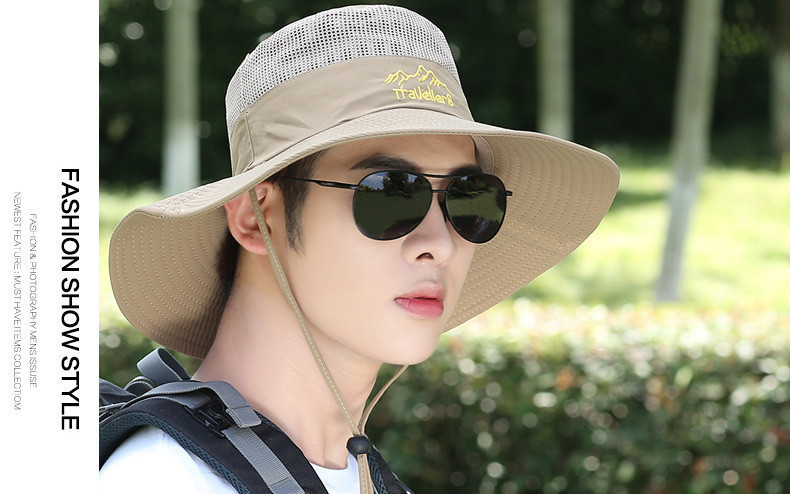 夏新品15cm大きなつばの帽子メンズアウトドアサンシェード日焼け止め帽子日よけ帽釣り帽登山漁師