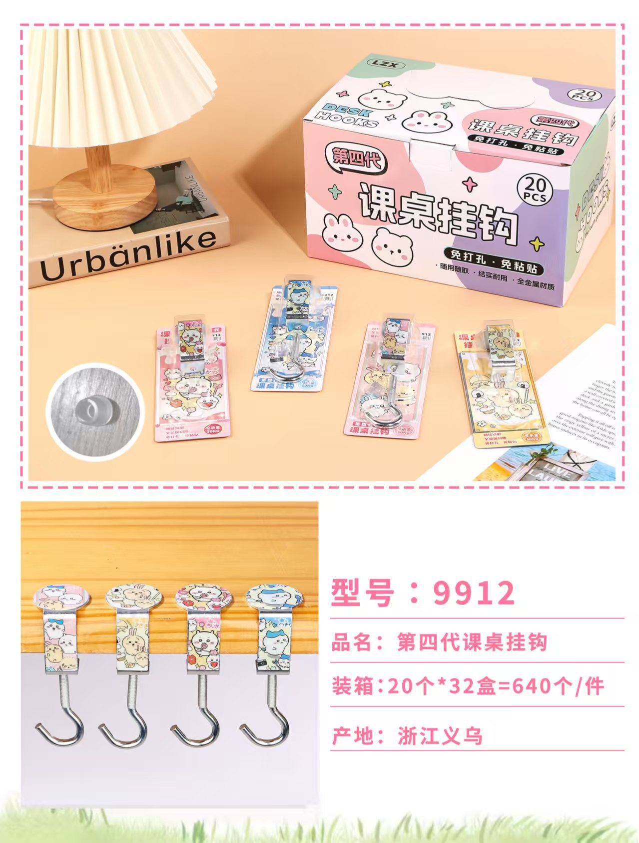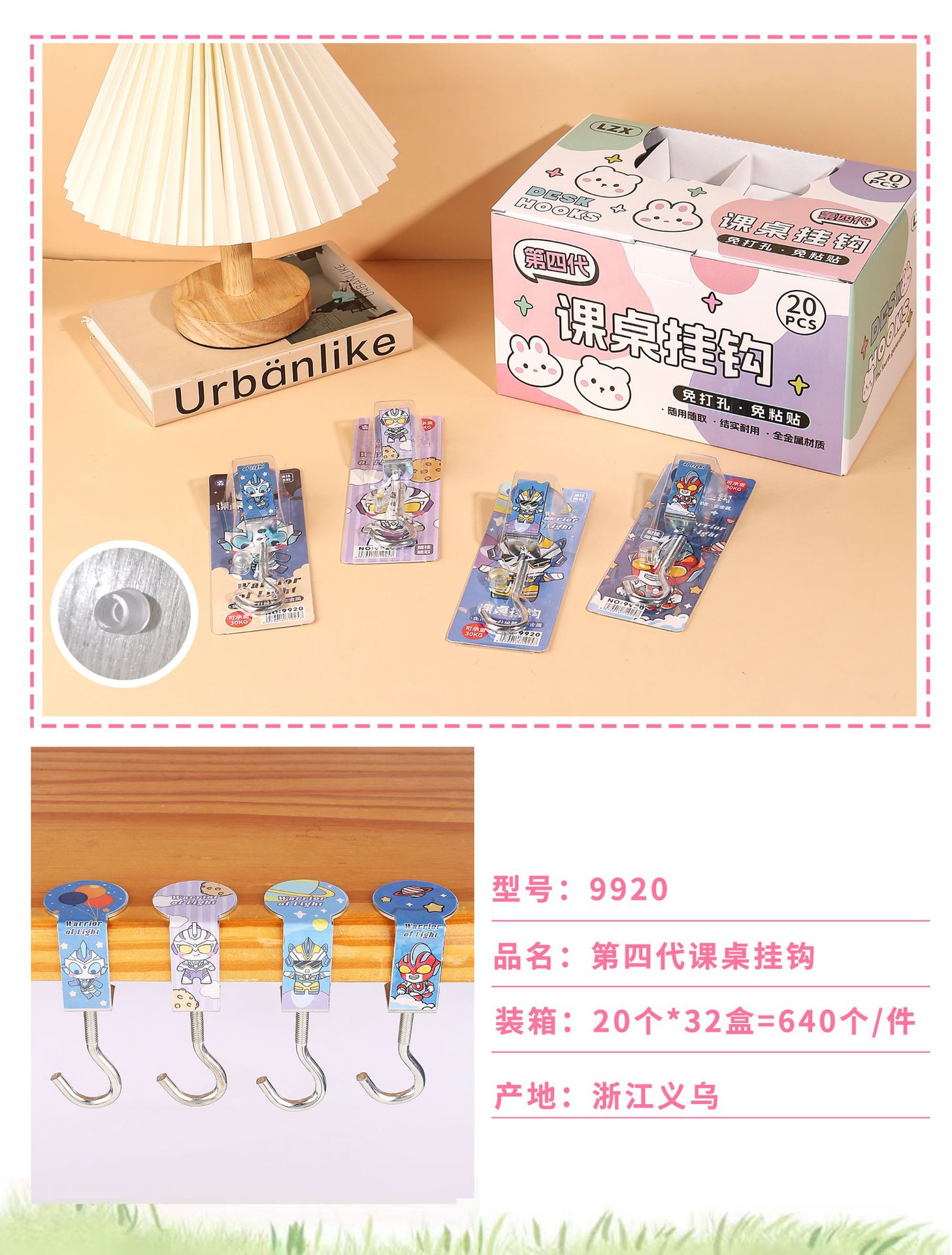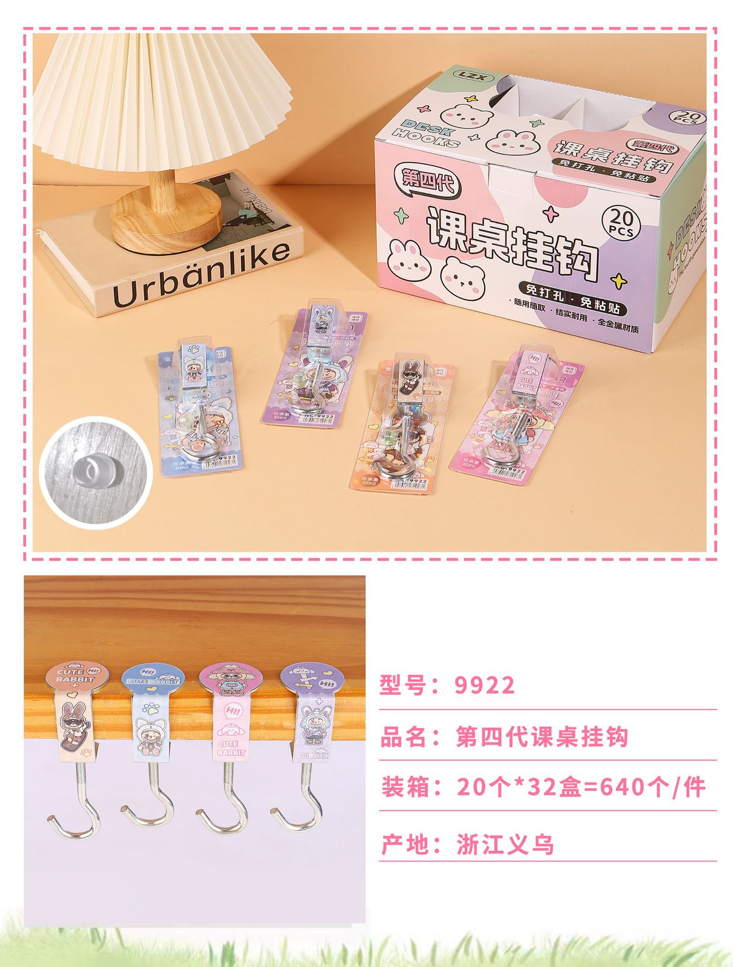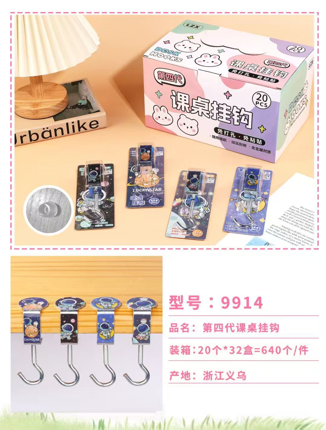 创意学生书包挂钩学生桌面可拆卸挂包勾办公桌侧边装饰挂包钩批发