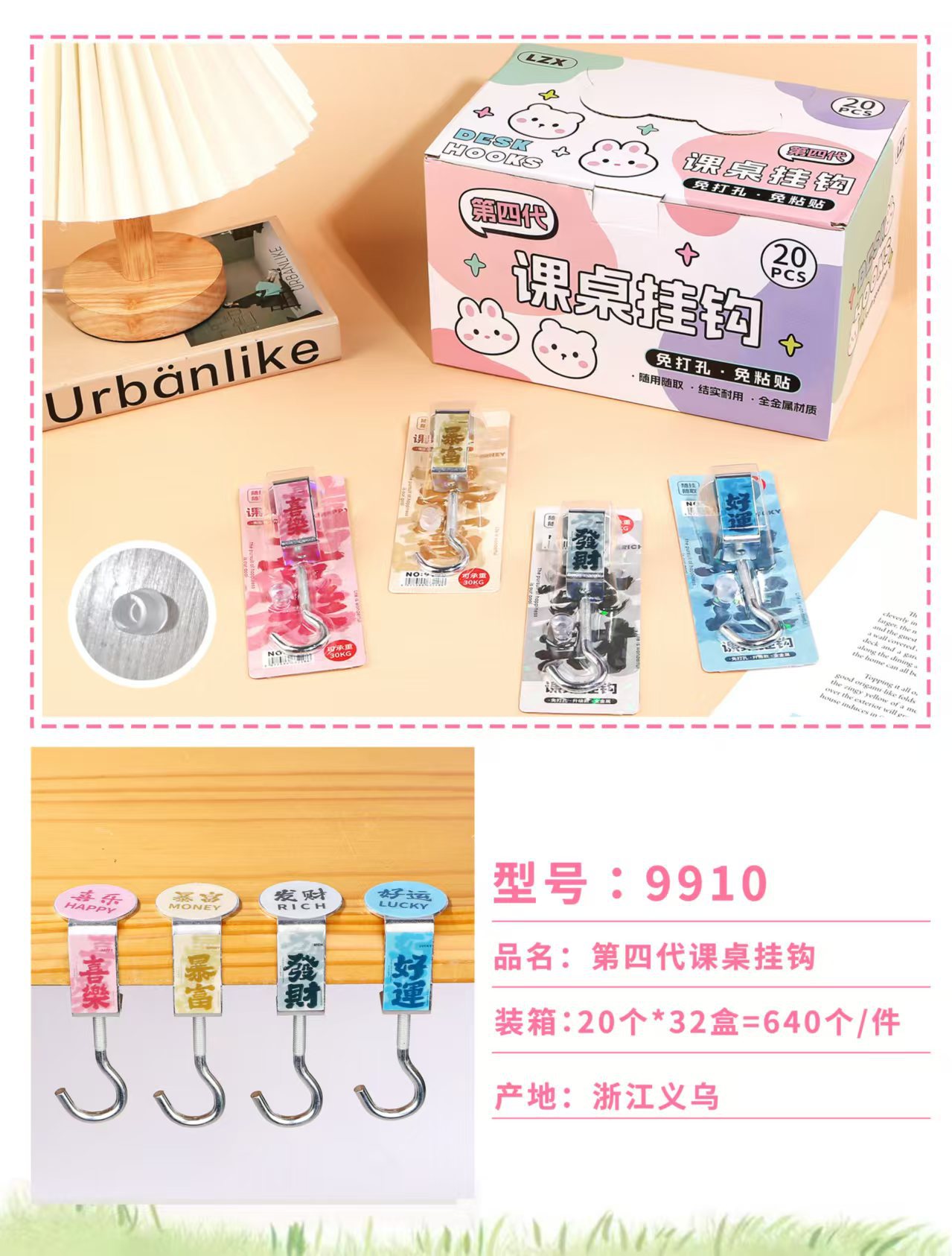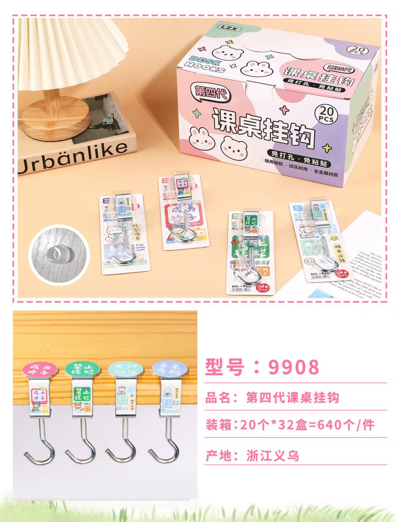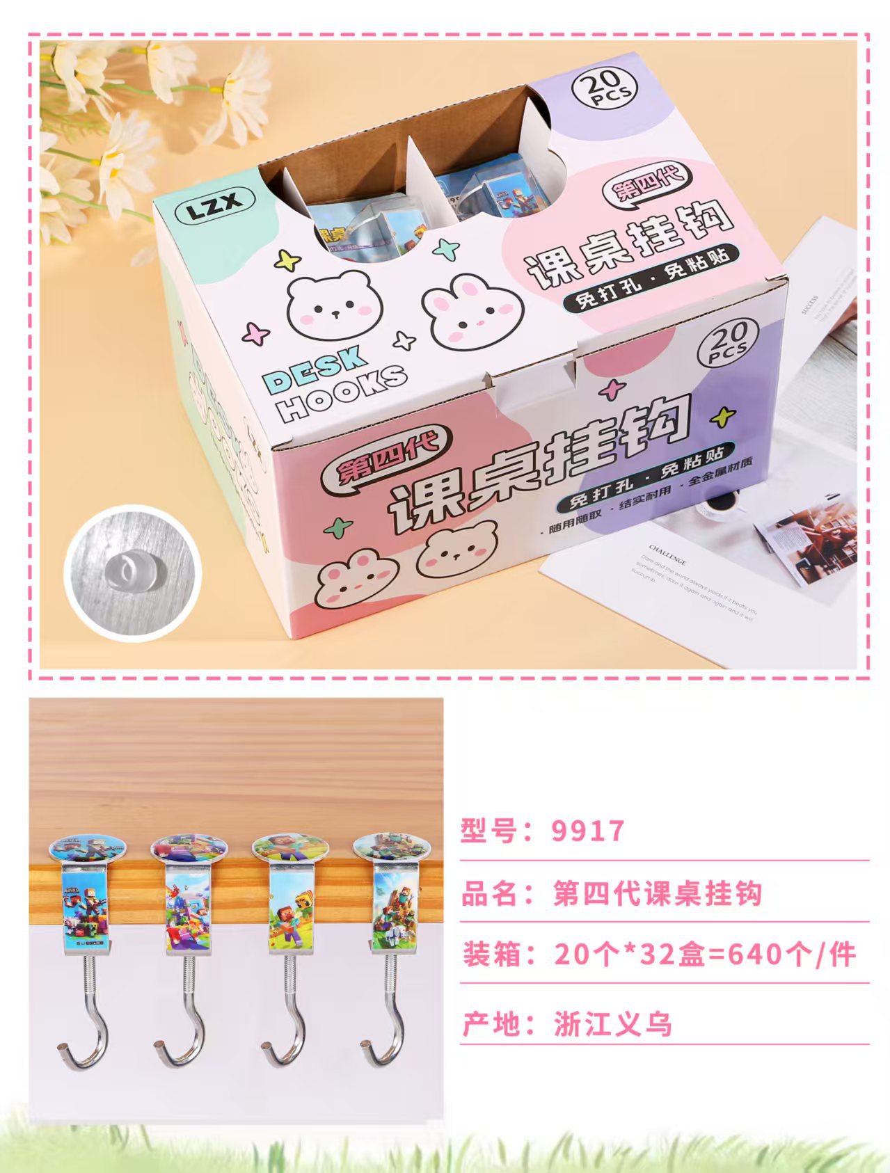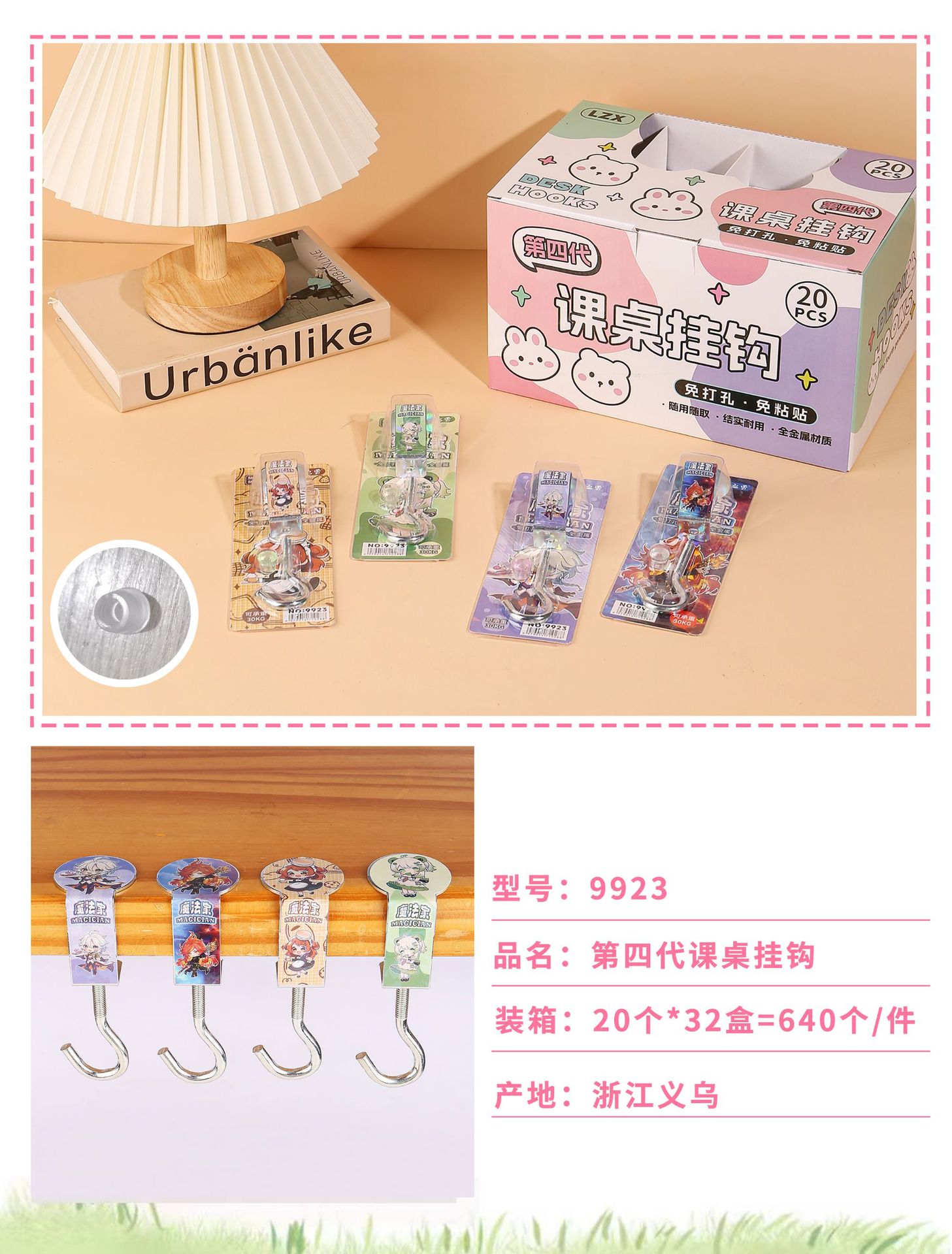 创意学生书包挂钩学生桌面可拆卸挂包勾办公桌侧边装饰挂包钩批发