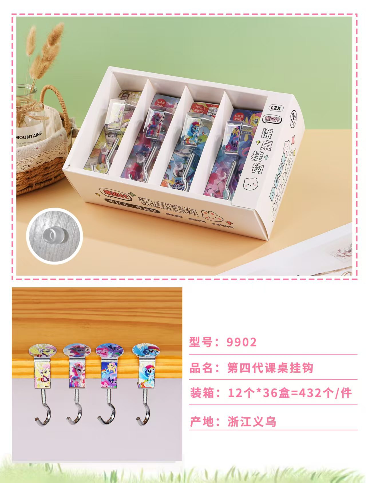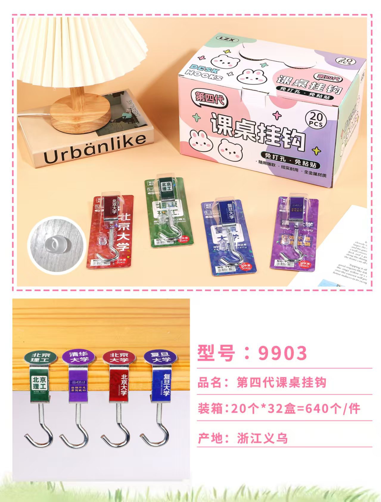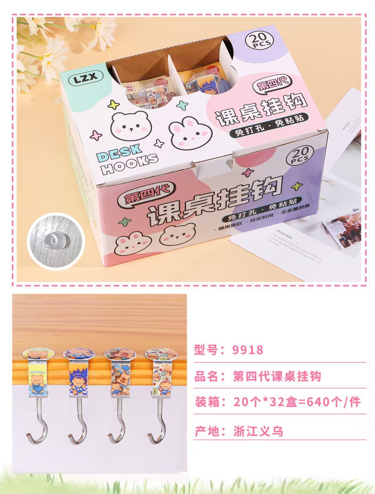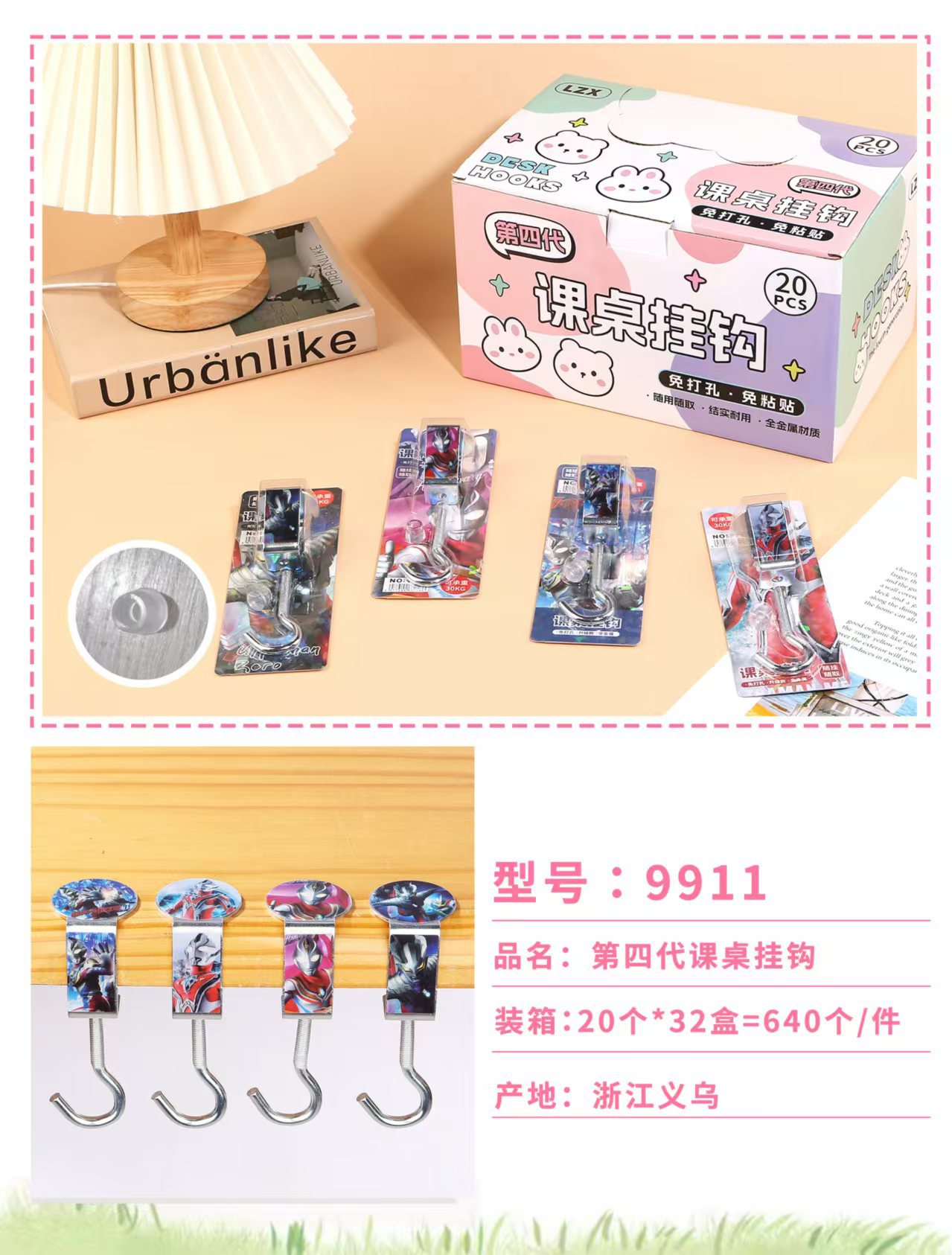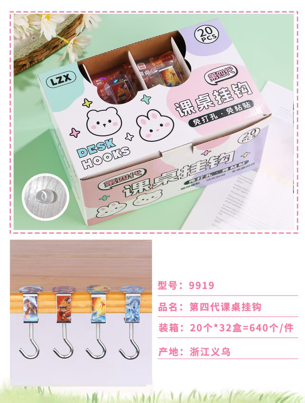 创意学生书包挂钩学生桌面可拆卸挂包勾办公桌侧边装饰挂包钩批发