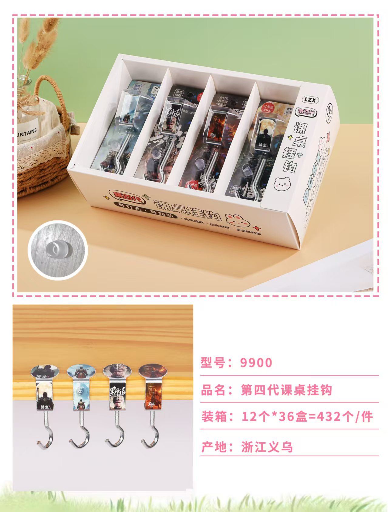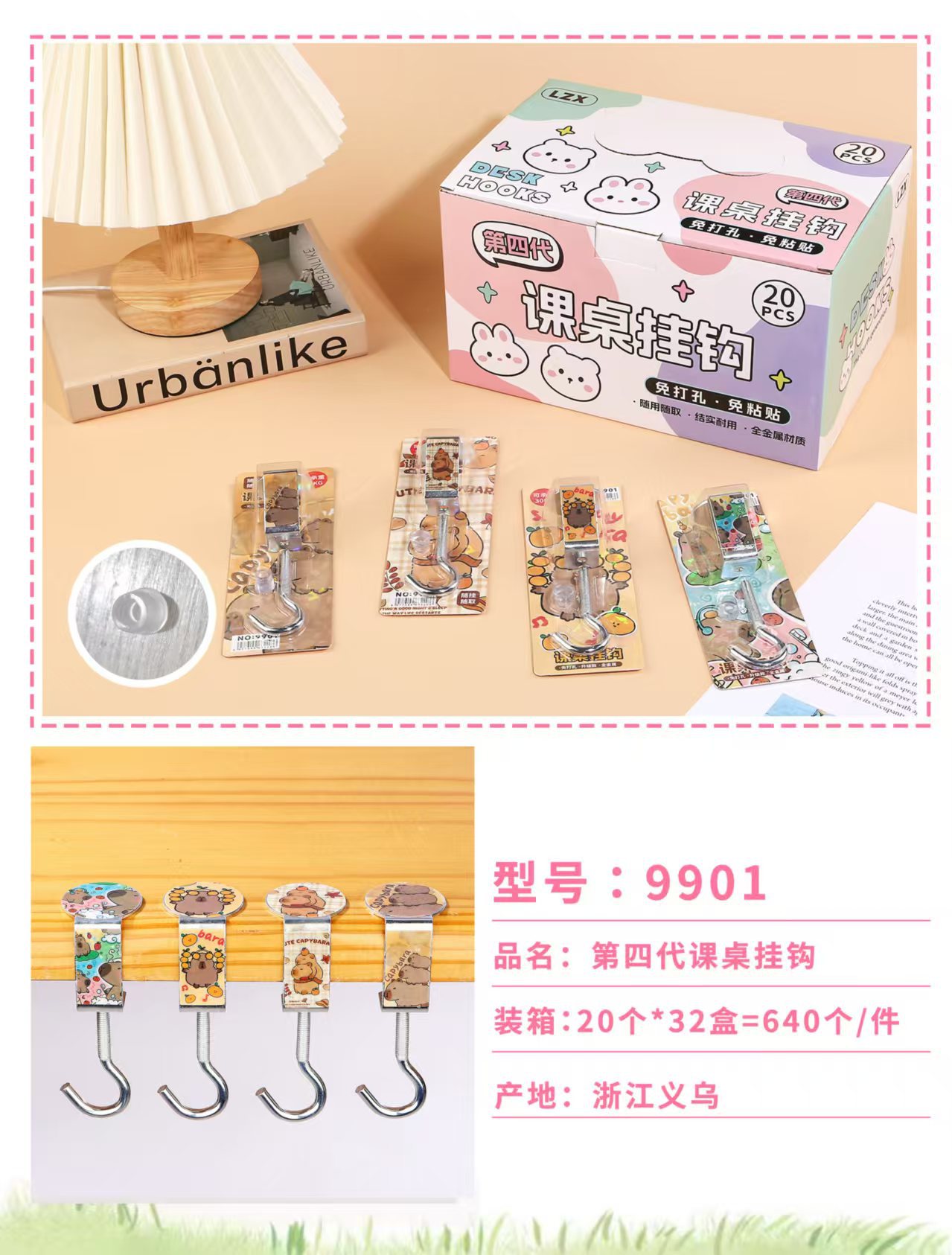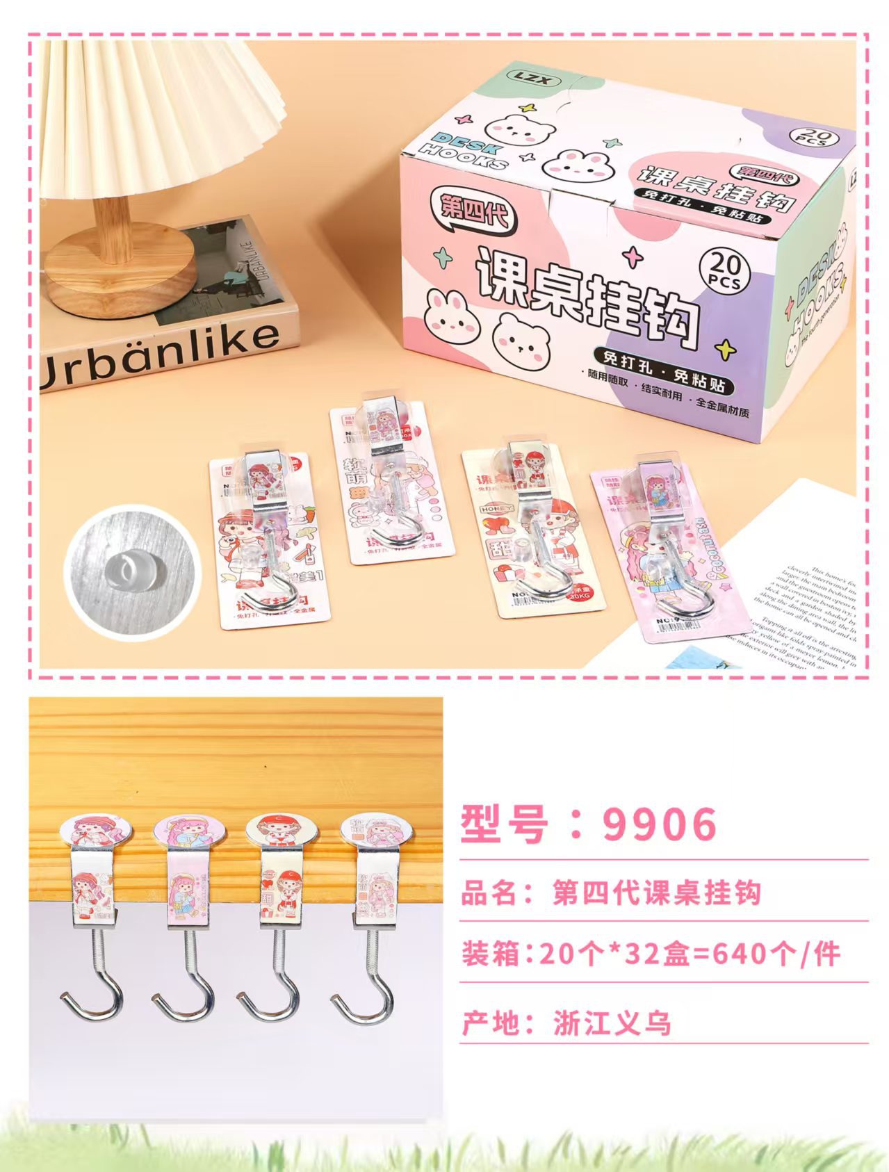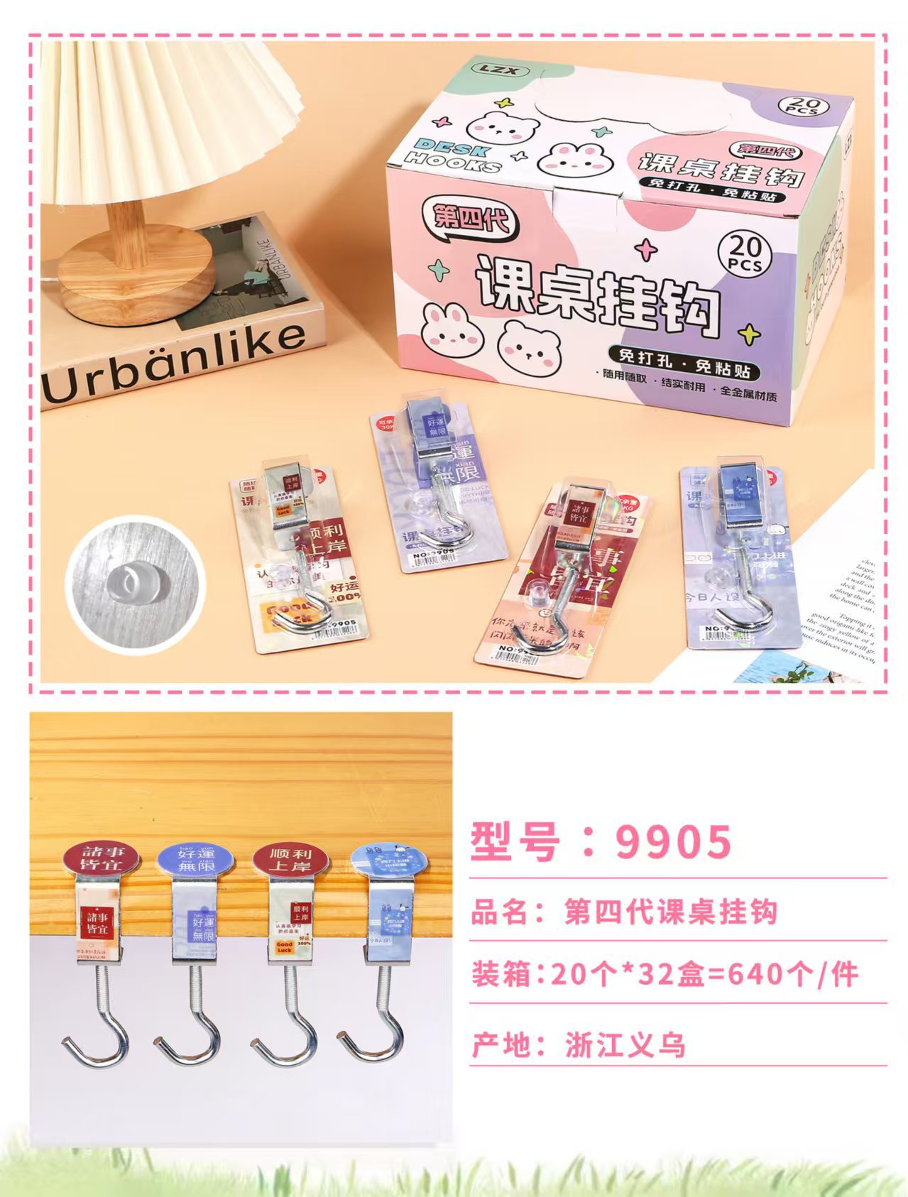 创意学生书包挂钩学生桌面可拆卸挂包勾办公桌侧边装饰挂包钩批发