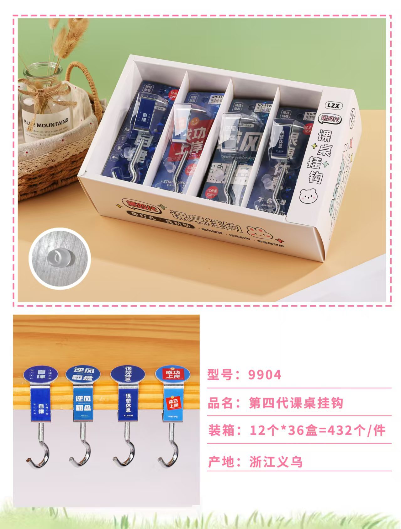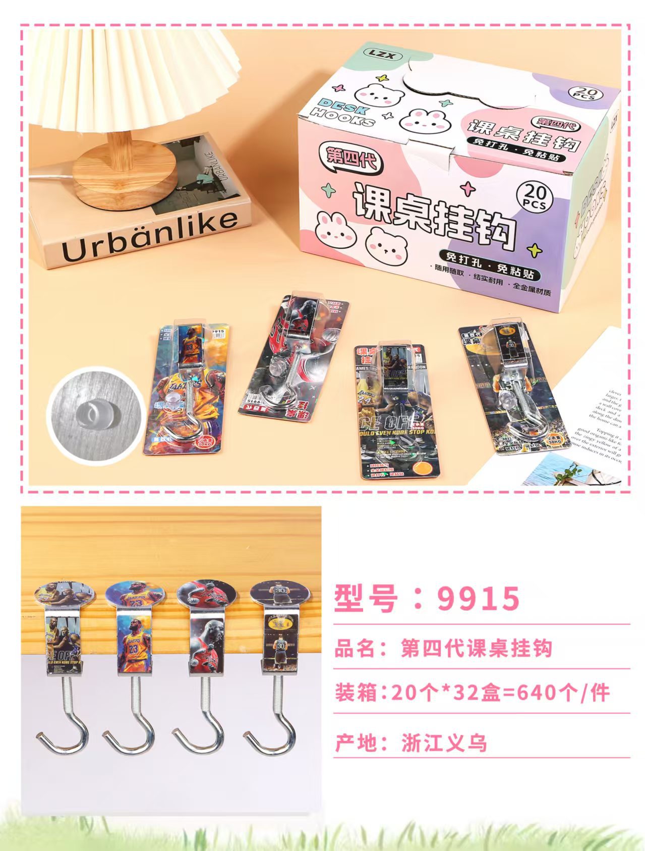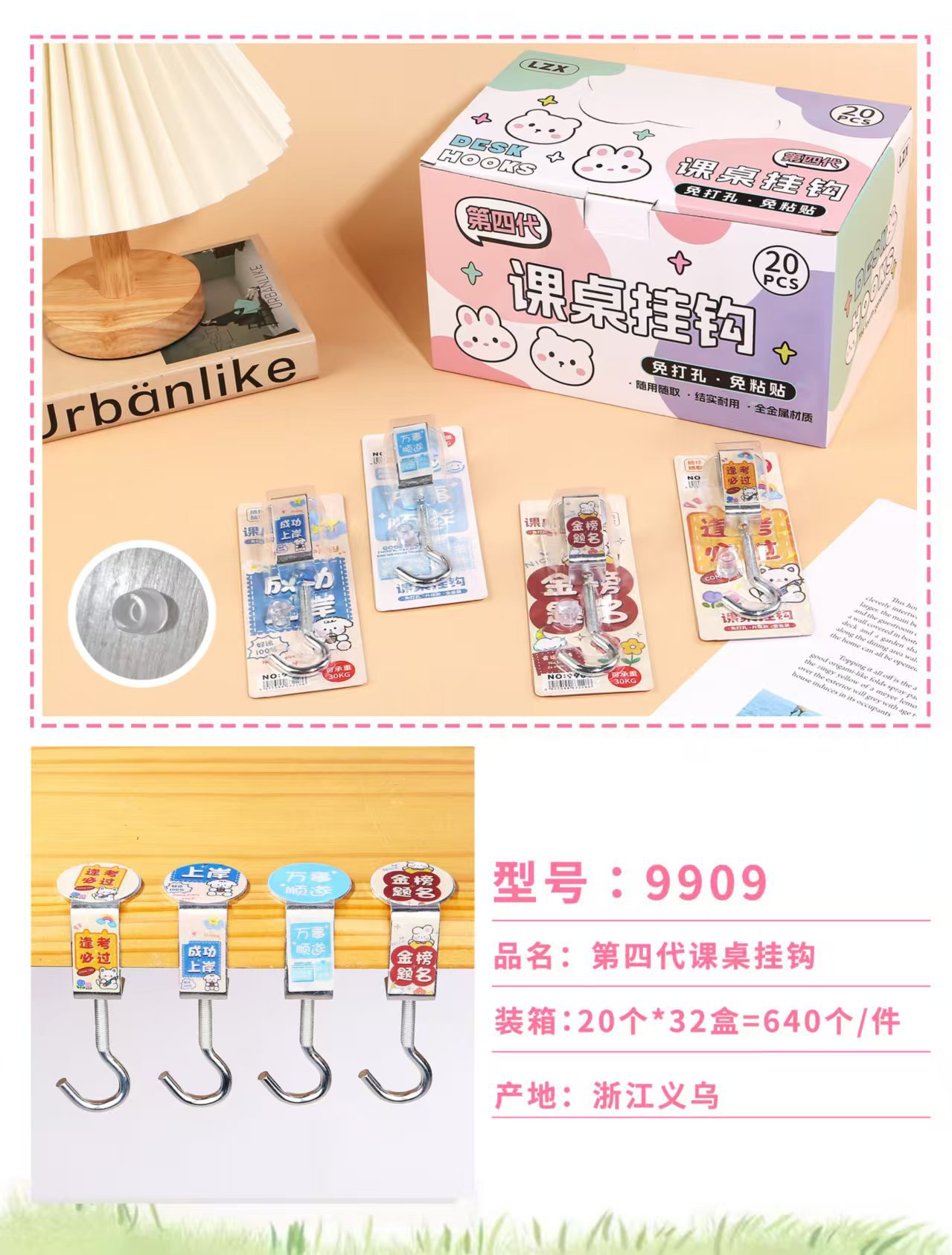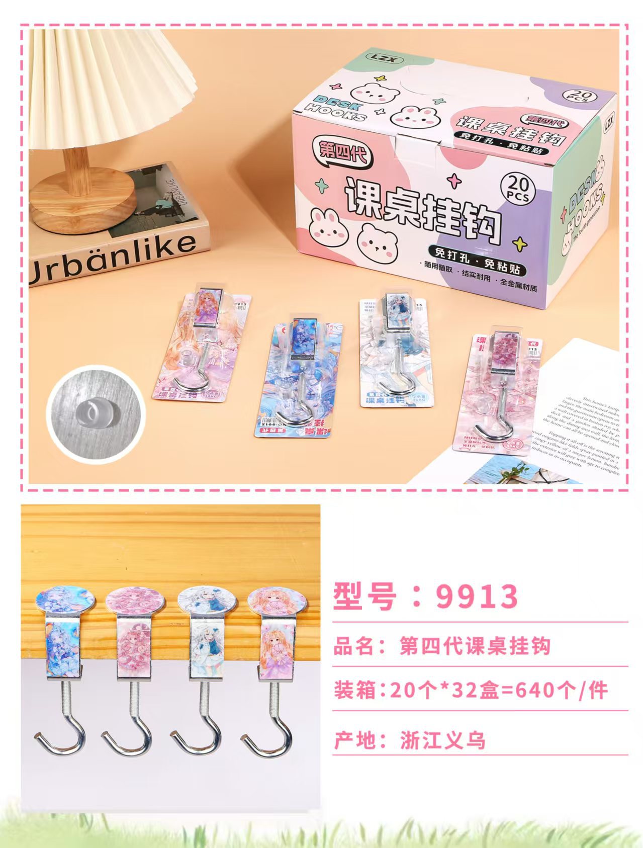 创意学生书包挂钩学生桌面可拆卸挂包勾办公桌侧边装饰挂包钩批发