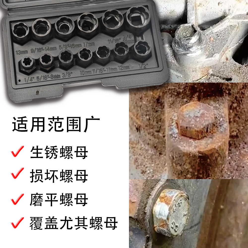 破損したナット、ボルト、ネジ、タイヤ、スリップネジ、六角取り外しソケットツールセットの13点セット