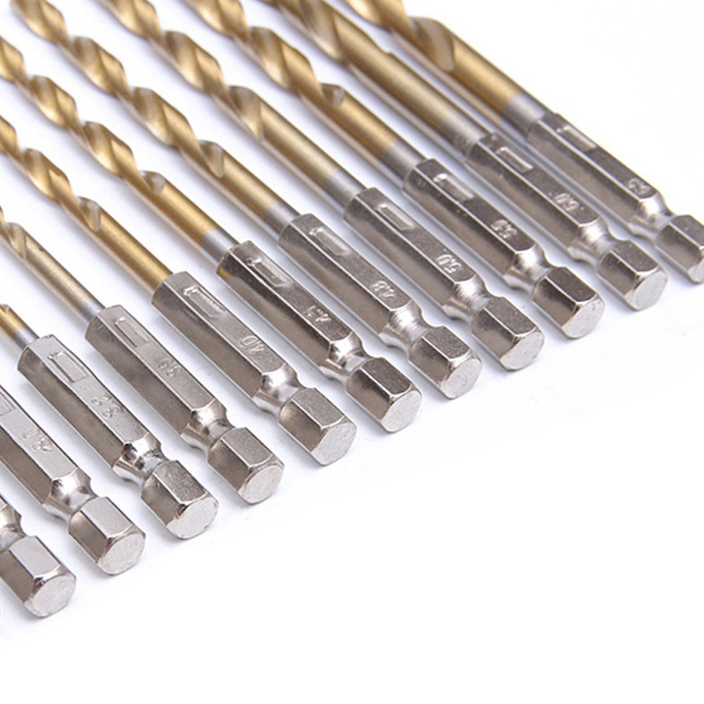卸売り13pc六角柄チタンメッキ麻花ドリル1.5-6.5高速鋼穴あけ器木材鉄皮拡穴ドリル