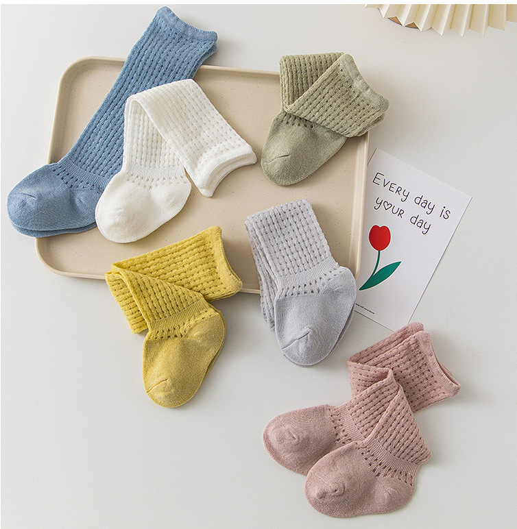 新生児、0-1-3歳の男の子と女の子向けの夏用薄手の防蚊メッシュ通気性のある長尺ボーンレスソックス
