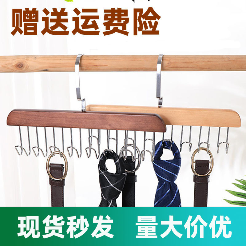 木製ストラップハンガー多機能家庭用ハンガーネクタイベルト下着実木フック8フック波ラック