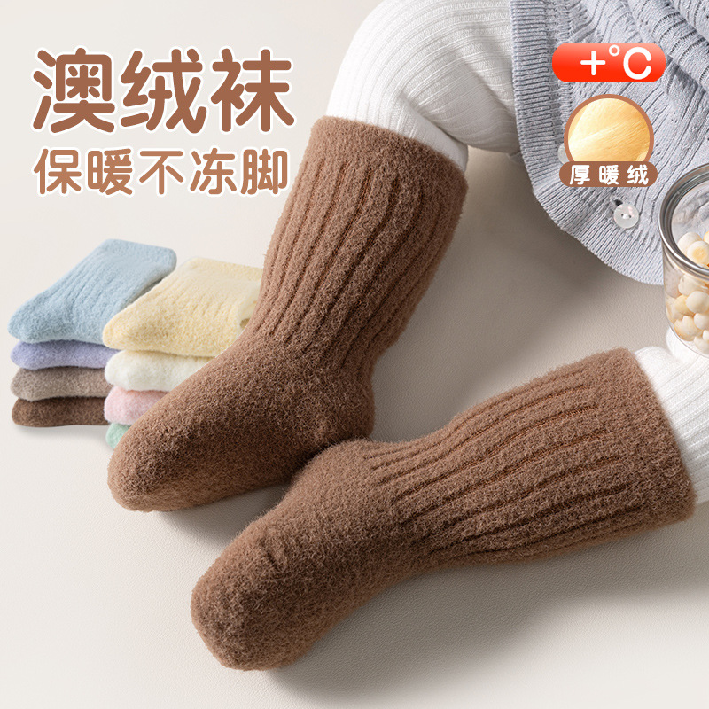 婴幼儿童0-6-12月3岁男女宝宝春秋冬季澳绒加绒加厚保暖中筒袜子