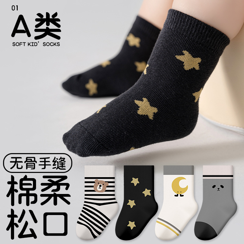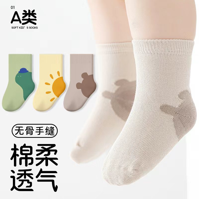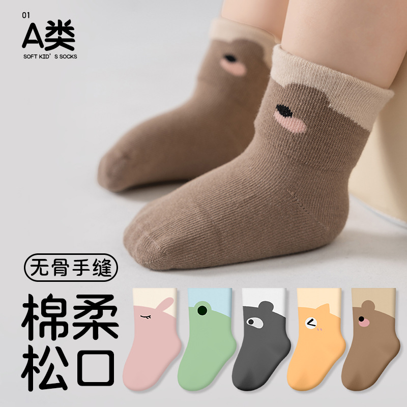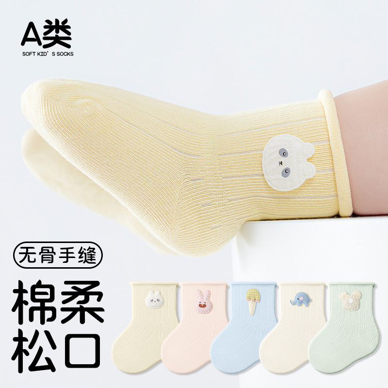 新初生婴幼儿童0-1-3岁春秋季男女宝宝A类棉无骨松口不勒腿中筒袜