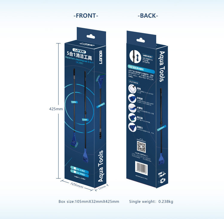 クロスボーダー清掃ブラシ、藻取りナイフ、苔・水草用伸縮式5in1水槽ブラシ、網付き水槽用ロングハンドルブラシセット