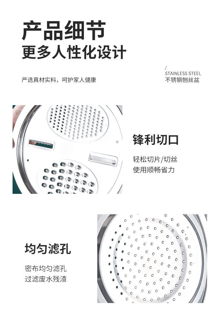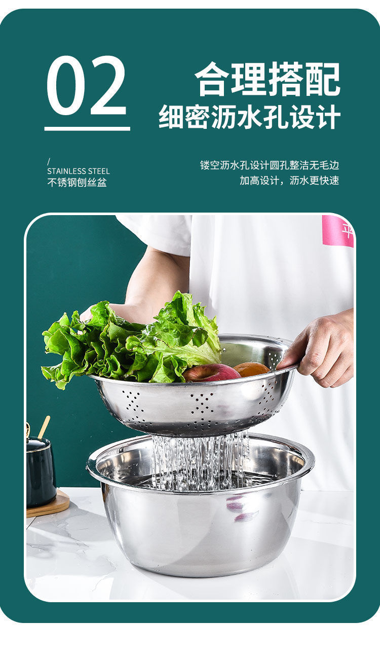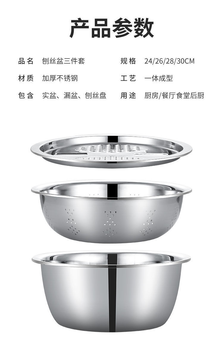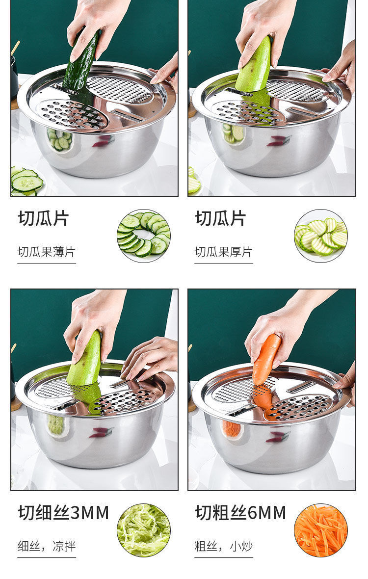 【三件套】切菜神器不锈钢刨丝切片土豆擦丝器洗菜盆沥水篮多功能