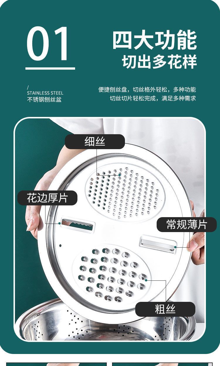 不锈钢刨丝盆多功能切菜沥水神器洗菜土豆切片
